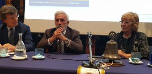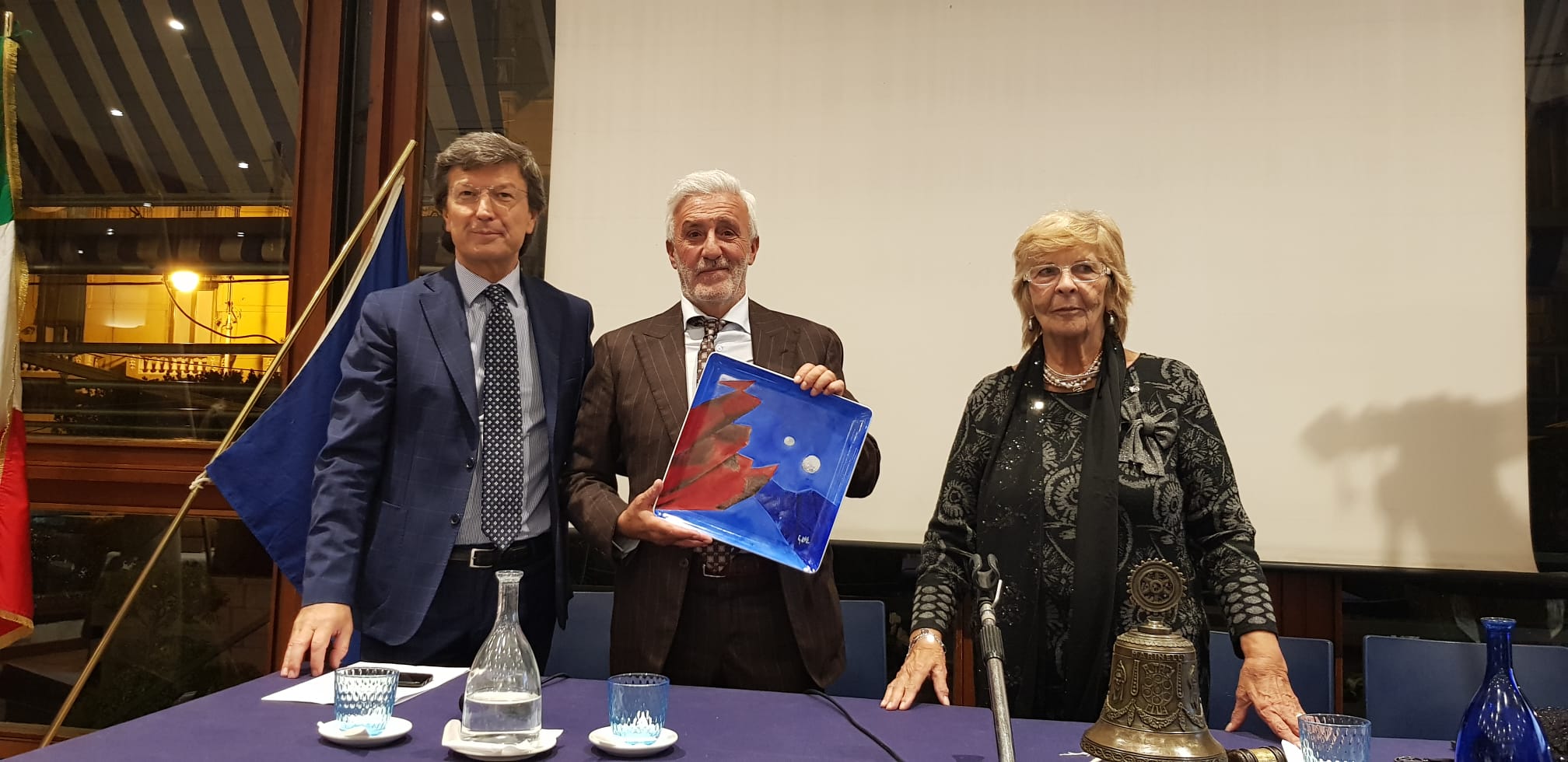 “ Un Posto al Sole” compie 25 anni: la serie televisiva trasmessa ogni sera alle 20,30 , dal 21 ottobre del 1996, su Rai3, ambientata a Napoli, che racconta le vicende dei condomini di “Palazzo Palladini”, sulla collina di Posillipo, e che ha raggiunto una media di ascolto di oltre due milioni di spettatori, è stata definita con orgoglio “un piccolo miracolo napoletano” dal dottor Antonio Parlati, Direttore del “Centro di Produzione Rai” di Napoli, che , invitato dal giornalista rotariano Pino Blasi, ha partecipato all’incontro organizzato al “Circolo Canottieri Irno” dal “Rotary Club Salerno a.f. 1949”, presieduto dalla professoressa Maria Rosaria Lombardi che ha sottolineato l’importante ruolo svolto dalla soap che affronta anche varie tematiche sociali:” Un Posto al Sole ha una ricchezza di argomentazioni trattate che hanno contribuito a renderla popolare: le problematiche della città di Napoli, la camorra, l’abbandono degli animali, i rifiuti tossici, la mala sanità, l’affido, il tema del bullismo”. Il dottor Parlati ha raccontato che la famosa serie televisiva, giunta a quasi 6000 puntate trasmesse, è nata da un’altrettanta famosa serie televisiva australiana, e che dietro le quinte lavorano oltre 200 persone:” Ogni puntata si svolge nella data in cui viene trasmessa e gli autori devono essere bravi, quando tre mesi prima scrivono la trama della puntata, a capire quali saranno i temi che saranno di interesse nel periodo in cui sarà trasmessa la puntata che viene girata un mese e mezzo prima”. Parlati ha ricordato che hanno curato la regia di “Un Posto al Sole” più di 130 registi e che hanno recitato importanti attori tra i quali anche l’attrice salernitana Regina Senatore che interpretava il ruolo di Donna Lucia. Un Posto al Sole” è anche un grande attrattore turistico: ”Questa fiction lascia sul territorio ricchezza: in Campania abbiamo uno dei tassi più alti di realizzazione di fiction e questo contribuisce a valorizzare il nostro territorio”. L’attore Patrizio Rispo che nella fiction interpreta il ruolo di Raffaele Giordano, il portiere di “Palazzo Palladini”, ha raccontato che: “Un Posto al Sole” è una macchina che lavora fino a quattordici ore al giorno per produrre un girato di 30 minuti: questa è la grande rivoluzione!”. Secondo Rispo la vera protagonista della fiction è Napoli:” La nostra mission è valorizzare l’Italia , la Campania e Napoli. La gente ci ha visto crescere come uomini e come attori: siamo circondati dall’affetto, dall’attenzione e dall’ascolto della gente che ci vede quasi come persone di famiglia. Noi sentiamo la responsabilità di essere da esempio”. Patrizio Rispo che si è definito “un sano bipolare” perché ormai il suo personaggio è entrato a far parte della sua vita:” Sono il frutto di quello che è Patrizio e di quello che è Raffaele”, è un po’ la colonna portante della fiction: alcuni dicono che ne rappresenta il brand, il simbolo. Rispo ha raccontato che quando la gente lo incontra per le strade dei quartieri di Napoli, lo saluta chiamandolo indifferentemente: ” Raffaele, Patrizio, maestro, ’o guardaporta, ‘o zio”. Un Posto al Sole” è visto anche nel Nord d’Italia e all’estero:” Abbiamo un pubblico di 40 milioni sparsi in tutto il mondo: molti hanno imparato l’italiano vedendo le nostre puntate”. Ai due protagonisti della serata sono state donate due opere dell’artista Bartolomeo Gatto. recentemente scomparso. Durante la serata la Presidente Maria Rosaria Lombardi ha nominato Socio Onorario del Club il Past Governor Massimo Franco.