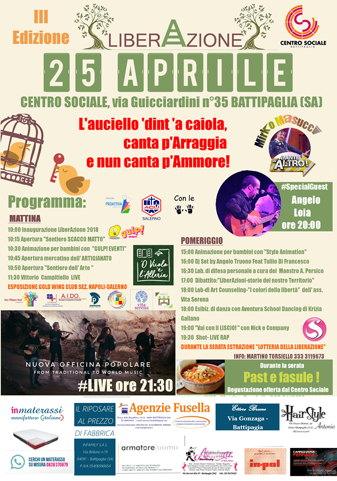 Vi aspettiamo numerosi il 25 aprile presso l’area verde del Centro Sociale di Battipaglia, per divertirci insieme e fare memoria delle nostre radici!
