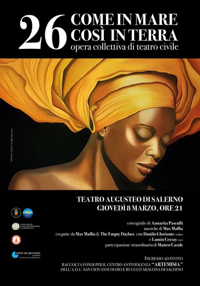 LA FINALITÀ La scelta della data dell’8 marzo per la messa in scena non è casuale: obiettivo della serata è raccogliere fondi a sostegno dello Sportello di Ascolto – Centro Antiviolenza di Genere “Artemisia”, ubicato al Pronto Soccorso del plesso Ruggi dell’Azienda Ospedaliera Universitaria San Giovanni di Dio e Ruggi D’Aragona di Salerno.