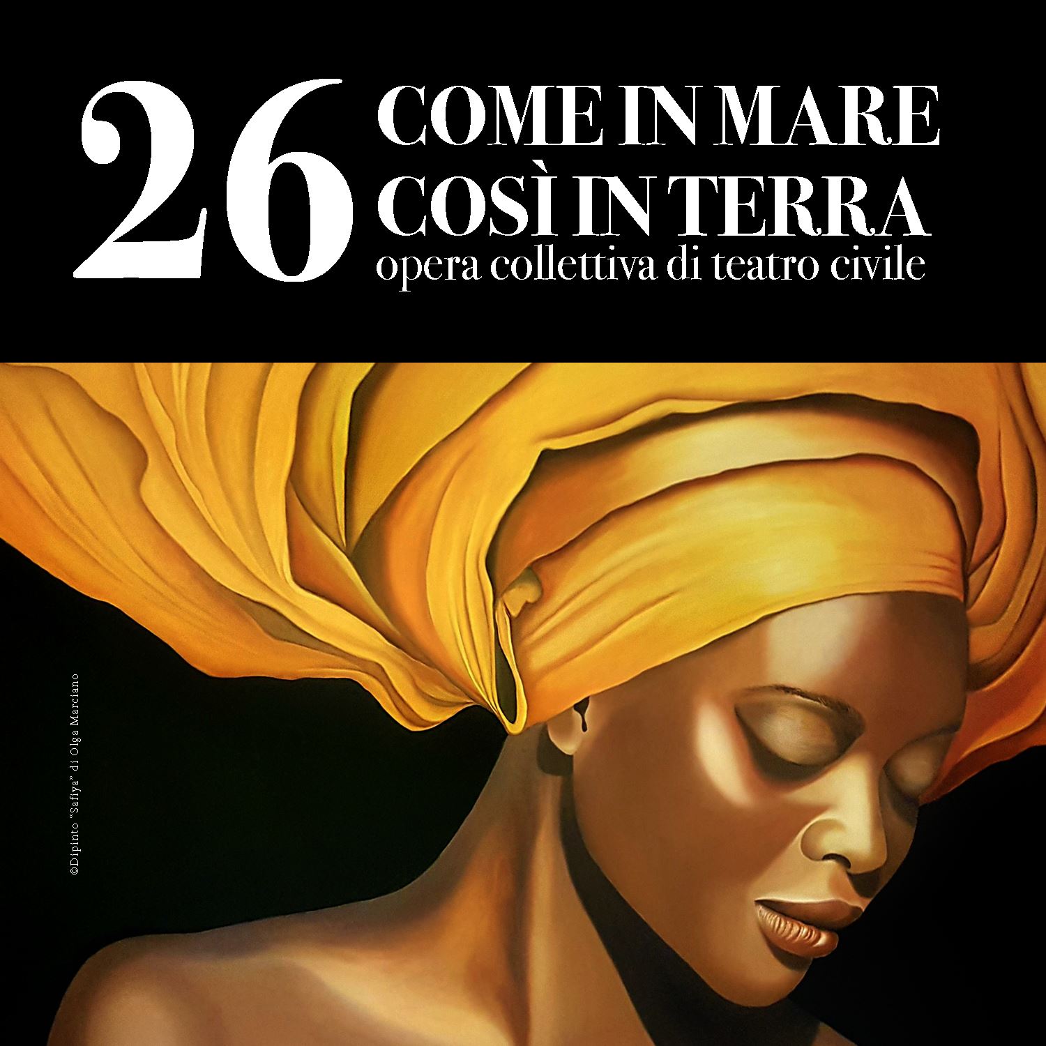 Un inedito progetto collettivo per rileggere una delle più drammatiche pagine di cronaca dello scorso anno, riflettere su una delle più urgenti emergenze umanitarie dei nostri giorni e contribuire ad una buona causa: sono le tante anime di  “26 – Come in Mare Così in Terra”, lo spettacolo di teatro civile promosso dall’Ordine dei Giornalisti della Campania che andrà in scena giovedì 8 marzo al Teatro Augusteo di Salerno in collaborazione e con il patrocinio del Comune di Salerno ed il sostegno della Fondazione Cassa di Risparmio Salernitana. All’evento partecipa anche una delegazione del Comando Provinciale dei Vigili del Fuoco di Salerno, guidata dal Comandante Adriano De Acutis.