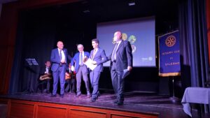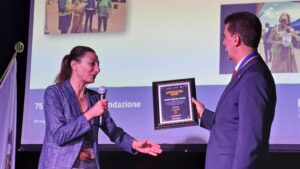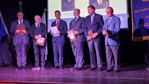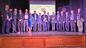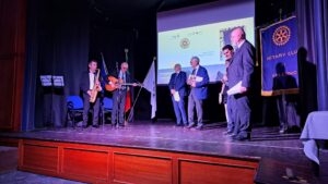 Il 30 maggio 1949 grazie ad alcuni soci del “Rotary Club Napoli” veniva fondato il “Rotary Club Salerno”, il secondo in Campania. Il Club era costituito da 26 Soci effettivi ed un Socio Onorario: il Grande Ufficiale e Ambasciatore Raffaele Guariglia. I soci erano: Alfonso Alfani, Primo Baratta, Emilio Barone, Pasquale Caterina, Antonio Conforti, Francesco Coppola, Matteo D’Agostino, Salvatore D’Amico, Gaetano Del Vecchio, Carmine De Martino, Domenico Florio, Gaetano Grasso, Antonio Marano, Francesco Marciano, Mario Mauro, Gaetano Moscati, Ernesto Nunziante, Gaetano Nunziante, Mario Parrilli, Guglielmo Pepe, Tommaso Prudenza, Cesare Ricciardi, Matteo Scaramella, Gaetano Scaramella, Gaetano Schiavo, Alessandro Tibaldi, Bruno Valsecchi. “In questi nomi c’è tutta la storia della città di Salerno. Nella prima assemblea del marzo del 1949 viene eletto primo presidente Tommaso Prudenza, di 37 anni. Il 30 maggio 1949 il “Rotary Club Salerno” ottiene la carta di ammissione al Rotary Internazionale”. A raccontare la storia del “Rotary Club Salerno” in occasione della serata celebrativa del 75° anno di fondazione del “Rotary Club Salerno” tenutasi presso il “Saint Joseph Resort” di Salerno, è stato il regista teatrale e attore Andrea Carraro, Past President del Club, che, attraverso un viaggio virtuale, ha fatto tornare indietro nel tempo i tanti soci rotariani presenti. Carraro , partendo dal futurismo di Marinetti, dal cubismo di Picasso e dalla scuola del Bauhaus, è arrivato a parlare dell’opera di Pirandello “ Sei personaggi in cerca d’autore” e della “Macchina di Turing”, chiamata “Enigma”, che serviva a decrittare il sistema cifrato dei messaggi inviati dai tedeschi durante la guerra: “Questi erano i linguaggi innovativi dei primi cinquant’anni del ‘900: in quest’ambito nasce, il 23 febbraio del 1905 , a Chicago, un nuovo linguaggio: quello di Paul Harris; la grande innovazione del Rotary”. Carraro ha poi ricordato che nel 1949, anno di fondazione del primo Club Rotary salernitano, nella nostra città arrivò il Giro d’Italia:” A vincere la lunghissima tappa Cosenza-Salerno di 292 km. con il traguardo fissato all’interno del vecchio “Stadio Comunale” fu il mitico Fausto Coppi. Il 2 febbraio del 1949 riprese vita anche il “Casino Sociale” con la festa dei Lancieri. In quell’anno i Club Rotary in Italia erano già 49”. A ricreare l’atmosfera di quegli anni sono stati i musicisti Giuseppe Plaitano, al sax tenore, e Vincenzo Barbato alla chitarra, che hanno suonato alcuni brani musicali dell’epoca. Tante le autorità rotariane presenti presentate dal Prefetto del Club, Alessandro Ruggiero: i segretari distrettuali Giuseppe Ascione e Attilio Leonardo; gli Assistenti del Governatore: Tony Ardito, Dino Bruno, Ciro Senatore, Geppino D’Amico; il Governatore Nominato Angelo Di Rienzo, i Past Governor Alessandro Castagnaro, Costantino Astarita, Marcello Fasano, Gennaro Esposito, Massimo Franco. I presidenti dei Club: Camillo De Felice, Antonino Sessa, Sabato Cuozzo, Vincenzo Capuano, Ugo Sorrentino, Carlo Tomeo, Vincenzo La Mura, Marco Saraceno, Clelia Schiavo, Pasquale Gentile, Ulisse Di Palma, Michele Boccia, Serena De’ Santi, la presidente dell’Interact Club Salerno, Benedetta Lombardi, la professoressa Ileana Del Bagno, Vicepresidente della Commissione Distrettuale dell’Archivio Distrettuale Rotary; il dottor Sergio Pepe, Presidente Commissione Distrettuale Storia e Cultura Rotariana; Pina Maiuri presidente Commissione Termalismo. I Past President: Antonio Vetrano, Giuseppe Cioffi, Antonio Bottiglieri, Giovanni Avallone, Andrea Carraro, Rosalia Galano, Basilio Malamisura, Giuseppe Blasi, Michele Di Filippo, Nunzio Di Filippo, Vittorio Salemme, Carlo Vigorito, Mario Petraglia, Gaetano Pastore, Vincenzo Caliendo, Cosimo Risi, Rocco Pietrofeso, Tony Ardito. A portare i saluti del Sindaco del Comune di Salerno, Vincenzo Napoli, l’Assessore alle Politiche Sociali Paola De Roberto. Tutti hanno ricevuto il gagliardetto del Club dai giovanissimi soci del Rotaract e dell’Interact: Maria Carla e Luigi Cioffi.