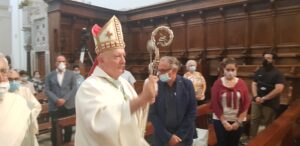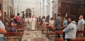 “ Il Tempio di Dio siamo noi. La nostra Cattedrale è importante perché è memoria di quel tempio nuovo generato dallo Spirito del Cristo risorto di cui noi siamo sue menti. Noi celebriamo, con memoria grata, il giorno della consacrazione di questa Cattedrale perché è qui che si raduna il Tempio vivo di Cristo che è il suo popolo. Queste mura ci sono care perché sono il segno della storia. Ciò che 936 anni fa è accaduto deve diventare stimolo e ripresa di coscienza al fatto che ci sia oggi, nuovamente, un popolo degno di costruire e abitare questi templi. Non c’è bisogno di templi nel deserto. Queste dimore sacre devono essere il segno di una vita che continua a generare persone alla Fede”. E’ stato il Vescovo di Salerno, Monsignor Andrea Bellandi a presiedere, lunedì sera, la celebrazione del 936° anniversario della Consacrazione della Cattedrale di Salerno avvenuta il 13 luglio del 1084 ad opera di Papa Gregorio VII, in esilio nella nostra città. Monsignor Bellandi, insieme al parroco del Duomo, Don Michele Pecoraro, ai sacerdoti della città e ai Vicari Episcopali, Don Franco De Crescenzo e Don Alfonso Gentile, partendo dall’ingresso principale della Cattedrale, ha proceduto all’aspersione della chiesa e dei fedeli presenti, accompagnato dai brani di Monsignor Frisina, cantati dai componenti del “Coro della Diocesi di Salerno”, diretto dal Maestro Remo Grimaldi, con il Maestro Elisabetta De Caro all’organo.