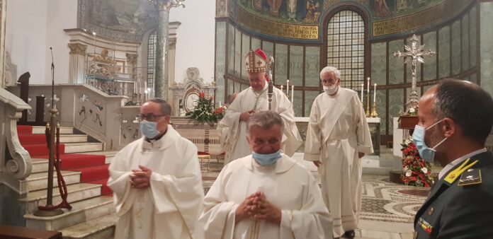 Don Michele Pecoraro, ha voluto fortemente che si ricordasse questa data storica per la nostra città:” Tra le più fulgide per la storia di Salerno e della sua Chiesa che si fonda sulla rivelazione e sulla tradizione. Qui oggi abbiamo un reale incontro con il Dio della Vita”. Don Michele, con emozione, ha anche ricordato che il Duomo di Salerno fu costruito tra il 1080 e il 1085 ,dopo la conquista della città da parte di Roberto il Guiscardo, dall’Arcivescovo Alfano I che lo progettò:” Roberto il Guiscardo e la consorte, la principessa Sichelgaita, vollero e sostennero la costruzione di questa Cattedrale, la seconda dell’Italia meridionale, in stile romanico, dopo quella di Palermo. Il giorno della consacrazione il popolo salernitano, festante, entrò per la prima volta in questo straordinario e imponente tempio, fondato sulle reliquie dell’Apostolo Matteo, che ammirò con stupore e meraviglia. Ogni piccolo frammento di questa Cattedrale ci parla e ci annuncia la bellezza divina, raccoglie la bellezza del passato per renderlo vivo nel presente ”. Dopo la Prima Lettura e il Salmo, letti dall’ingegner Germano Ricciardi, e il Vangelo, il Vescovo, Monsignor Andrea Bellandi ha celebrato la messa solenne e sottolineato l’importanza del momento:” La Chiesa, soprattutto in questo tempo misterioso e drammatico, in questo periodo d’incertezza sul futuro, deve essere un segno vivente di speranza e di preghiera”. Tra i presenti: il Vicesindaco Eva Avossa , il Senatore Alfonso Andria, il Comandante Provinciale della Guardia di Finanza, il Generale Danilo Petrucelli; i rappresentanti del Corpo dei Carabinieri: il Capitano Andrea Semboloni e il Luogotenente Gennaro Scognamiglio; il Presidente del “Rotary Club Salerno Duomo”, l’avvocato Alberto Cerracchio, e le rappresentanti della Croce Rossa Italiana: Marta Benesova, Giovanna De Marino e Michelina Odierna. (Pubblicato su “Il Quotidiano del Sud” edizione di Salerno).