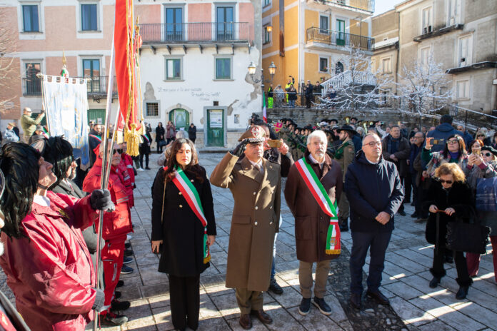 La manifestazione, con l’obiettivo di onorare la memoria delle vittime del terremoto del 1980 nei comuni del cratere, di omaggiare i militari dell’esercito italiano da sempre impegnati per la pace nel mondo e nell’aiuto delle popolazioni colpite dalle catastrofi, di ringraziare gli ex militari del 67esimo Fagarè che 43 anni fa prestarono servizio proprio nei comuni terremotati dell’Alto Medio Sele e Tanagro e l’associazione Alta Irpinia Solidale attiva nelle azioni di supporto ai malati oncologici, alle famiglie bisognose e agli ultimi, si è svolta in un primo momento celebrativo, in piazza Umberto I, con la deposizione di due corone di alloro dinanzi al monumento celebrativo della memoria ai caduti del sisma accompagnato dalle note del silenzio suonato dalla fanfara dei bersaglieri della Brigata Garibaldi. Al termine dell’omaggio ai caduti del terremoto, il corteo di autorità civili e militari, ha attraversato il Parco della Memoria per poi proseguire in chiesa per il conferimento delle targhe che al generale di Brigata è stata consegnata dal sindaco Di Geronimo e dal Presidente della Provincia, Francesco Alfieri, al referente del direttivo del 67esimo Fagarè è stata consegnata dal sindaco di Castelnuovo di Conza e dal Consigliere Provinciale con delega al turismo, Pasquale Sorrentino, e al Presidente di Alta Irpinia Solidale è stata consegnata dal sindaco di Castelnuovo di Conza e dal vicepresidente della Provincia, Giovanni Guzzo.