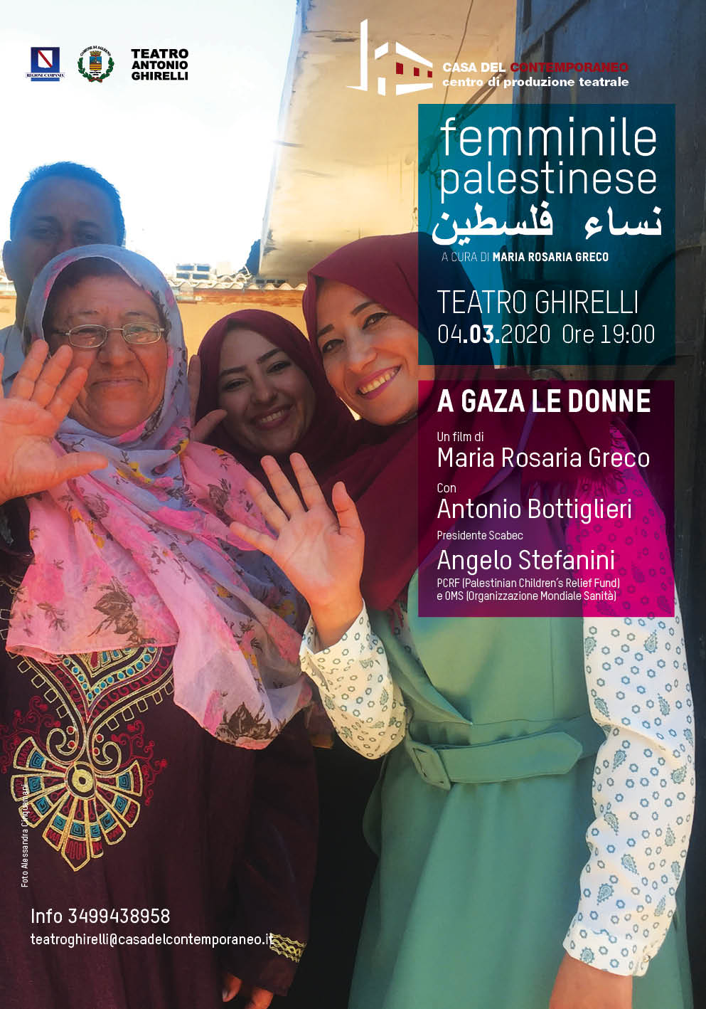 A parlare del film e delle condizioni di vita nella striscia di Gaza (legate alla potabilità dell’acqua, all’accesso alla corrente elettrica, alla possibilità di curarsi, di studiare, di lavorare, al livello di inquinamento da metalli pesanti dovuto ai bombardamenti, alla incredibile densità abitativa e al tasso elevatissimo e crescente di povertà) e con l’autrice nonché curatrice della rassegna, Maria Rosaria Greco, ci saranno Antonio Bottiglieri, presidente Scabec, ed Angelo Stefanini, medico attualmente impegnato con il PCRF (Palestinian Children’s Relief Fund), già docente dell’Università di Bologna dove fonda il Centro Studi e Ricerche in Salute Internazionale e Interculturale (CSI), già responsabile dell’ufficio dell’Organizzazione Mondiale della Sanità per i Territori Palestinesi Occupati, dove ha anche lavorato nella Cooperazione italiana come responsabile del programma sanitario italiano.