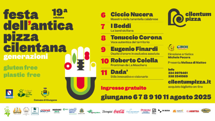 Nel cuore del Parco Nazionale del Cilento, torna uno degli eventi più attesi dell’estate: la Festa dell’Antica Pizza Cilentana, giunta alla sua diciannovesima edizione. Dal 6 all’11 agosto 2025, il borgo di Giungano si trasforma in un palcoscenico a cielo aperto dedicato alla gastronomia, alla musica popolare e alla valorizzazione delle eccellenze del territorio.