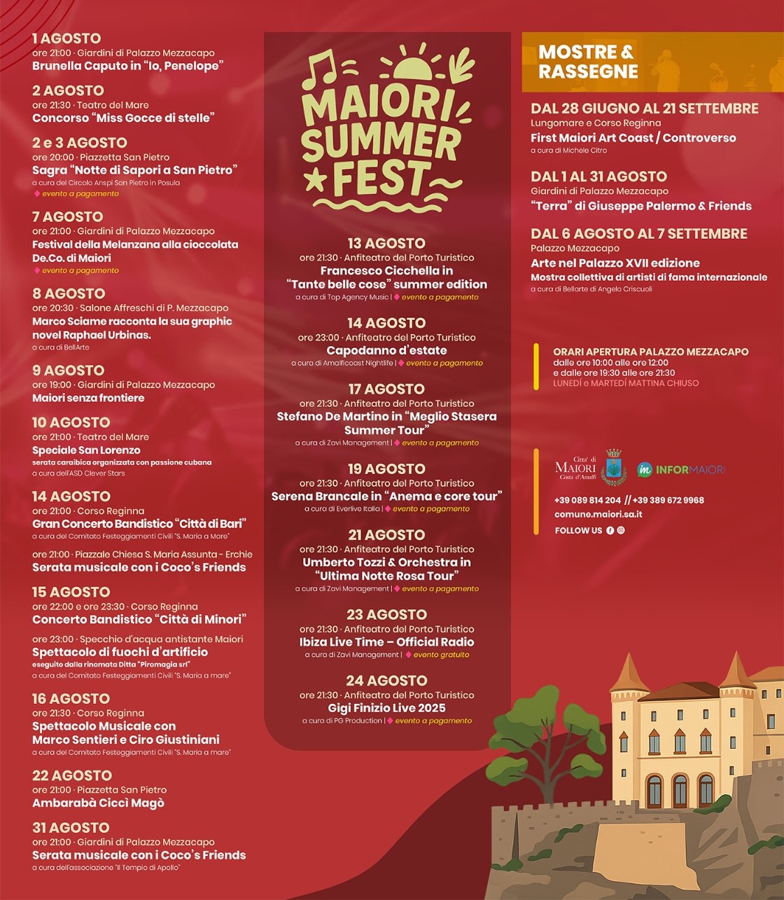 L’estate 2025 a Maiori si preannuncia come una delle più vivaci e ricche di eventi della Costa d’Amalfi, grazie a una programmazione che unisce spettacolo, cultura, tradizione e innovazione.