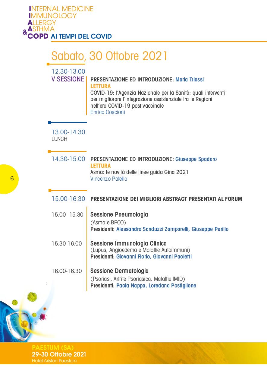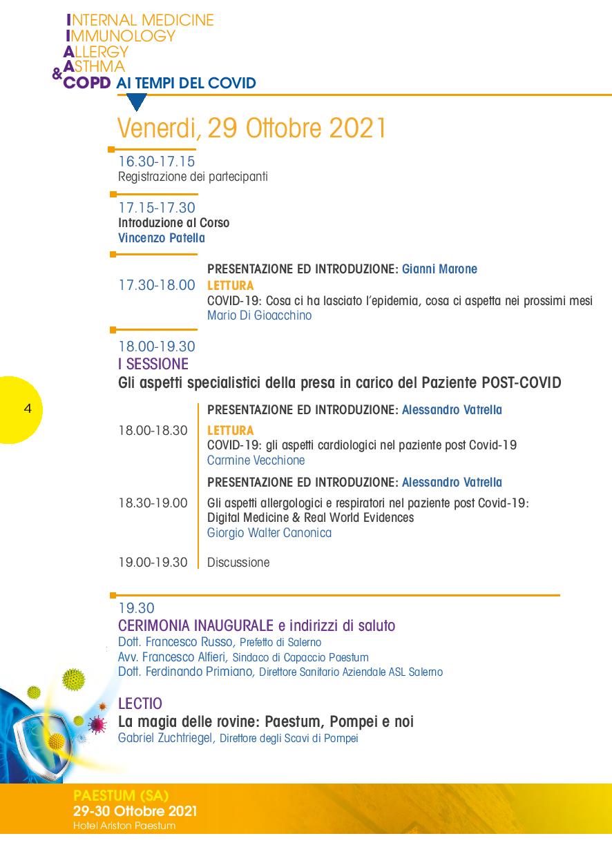 Interventi di esperti riconosciuti a livello nazionale e internazionale affronteranno diverse tematiche di come la medicina moderna ha risposto alle nuove sfide legate alla pandemia. In particolare, verranno trattati temi di medicina respiratoria, cardiologia, immunologia clinica, allergologia e dermatologia.