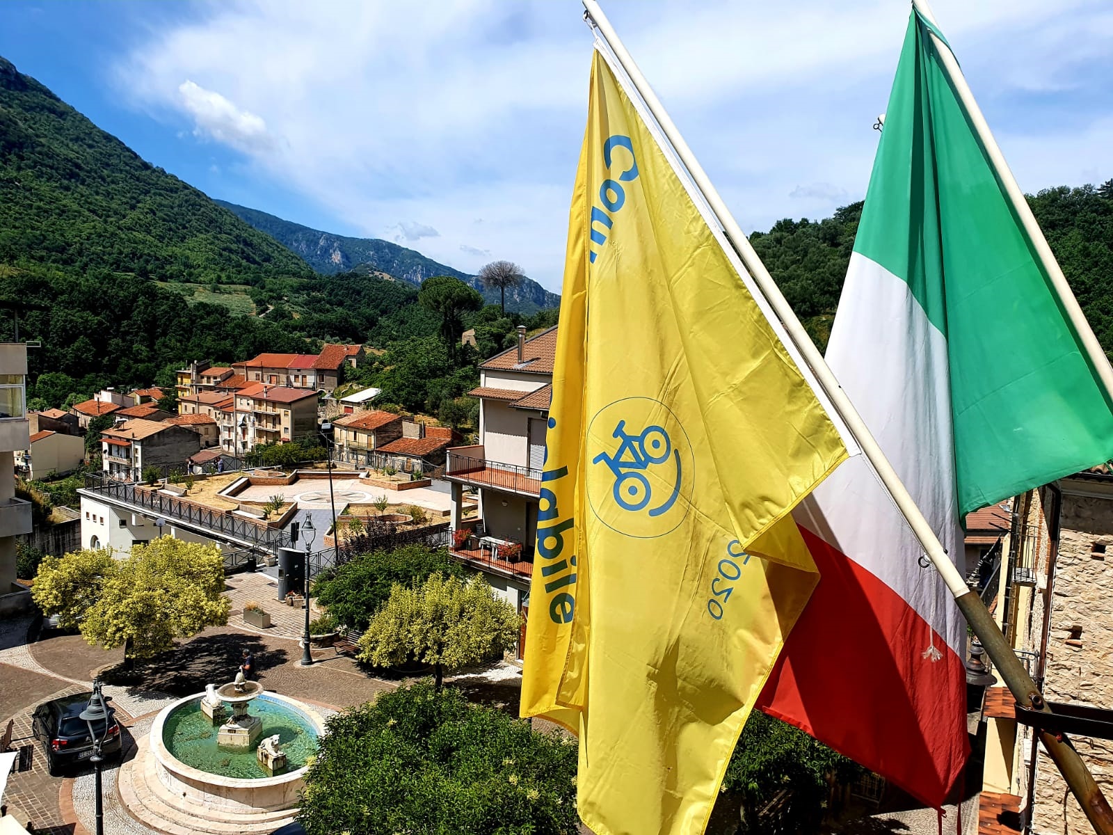 Impegno che l’Amministrazione comunale del piccolo borgo montano del Cilento porta avanti già da un po’ e che questa estate si è concretizzato in una serie di iniziative per implementare un turismo di montagna a misura dei cicloamatori con percorsi in bici e in mountainbike, la realizzazione di una ciclo-officina e il tracciamento di nuovi sentieri a disposizione di ciclisti esperti e amatoriali. Piaggine è il quinto comune cilentano ad aver ricevuto la “Bandierina gialla” dei ComuniCiclabili, unici in Campania, un attestato con il quale la FIAB sostiene le amministrazioni locali che attuano politiche concrete per la mobilità in bicicletta. Ieri, inoltre, in occasione del riconoscimento, a Piaggine è stata predisposta dai ragazzi del Servizio Civile l’installazione con la quale uno dei borghi più suggestivi della montagna del Cilento ricorda a chi entra nel paese il suo impegno a favore di una mobilità sostenibile per l’ambiente, attraverso la tutela dei cicloamatori. È stato, inoltre, anche finanziato un progetto, “Il Cilento ti Dà La Carica”, in partenariato con altri 5 comuni cilentani, che prevede la realizzazione di infrastrutture fondamentali per il cicloturismo: una colonnina elettrica, una rastrelliera e dei punti di accoglienza turistica. «Da alcuni anni -afferma il Sindaco Vairo – guardiamo con attenzione crescente al settore cicloturistico. Complice la pandemia, abbiamo deciso di spingere molto su questa opportunità che riteniamo sia compatibile con la Fase 3 e sostenibile per il nostro Territorio, caratterizzato da paesaggi mozzafiato e da strade secondarie a bassa percorrenza. Gli ultimi dati sul turismo in Cilento parlano, del resto, di una crescita del turismo escursionistico e, in particolare, del cicloturismo. L’Amministrazione comunale di Piaggine, grazie anche alla “rete” creata negli anni con associazioni private ed enti pubblici, promuove un territorio da riscoprire e vivere a stretto contatto con la montagna, in particolare il Monte Cervati, e si dispone ad accogliere in piena sicurezza turisti amanti di escursioni e di vacanze naturalistiche, in bici, ma anche a cavallo ed a piedi, in una delle aree più incontaminate della nostra regione».