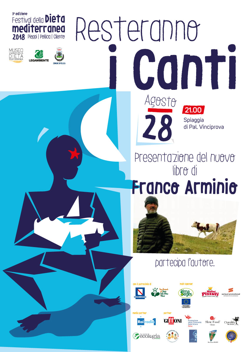 Anche quest’anno il Festival della Dieta mediterranea di Pioppi ospiterà il poeta-paesologo Franco Arminio. L’appuntamento con l’autore è per martedì 28 agosto alle ore 21.00 presso il giardino di Palazzo Vinciprova, sede del Museo Vivente della Dieta mediterranea. Per l’occasione Arminio presenterà il suo ultimo libro, “Resteranno i canti”, una raccolta di poesie che oscillano fra natura e corpo, vita e morte, dolore e ribellione.