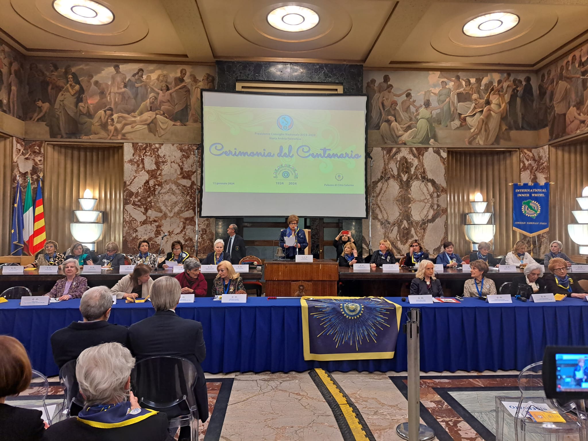“Un’associazione che non ha memoria del suo passato non ha futuro!”. Ha esordito con questa affermazione la Presidente Nazionale dell’Inner Wheel Italia, la professoressa Maria Andria Pietrofeso, per tutti Cucca, che ha dato avvio alle celebrazioni del “Centenario dell’Inner Wheel”, la più grande organizzazione femminile di service al mondo, nata nel 1924 a Manchester, su iniziativa di Margarette Golding. Per la prima volta sono giunte a Salerno tutte le massime autorità dell’Inner Wheel: presenti oltre 350 innerine, provenienti da tutta Italia, nello storico “Salone dei Marmi” del Palazzo di Città, messo a disposizione dal Comune di Salerno che ha patrocinato l’evento, come ha ricordato il Sindaco Vincenzo Napoli:” Siamo onorati di poter accogliervi e di farvi conoscere ed apprezzare il nostro territorio A voi, che siete l’altra metà del cielo, va il mio più caloroso benvenuto”. La Presidente nazionale Maria Pietrofeso, che ha fortemente voluto celebrare il Centenario nella sua città, ha ricordato i valori e i principi a cui si ispira l’Inner Wheel e che in Italia il primo Club nacque nel 1974:” Fu fondato a Napoli grazie alla prima presidente Luisa Bruni. Oggi siamo oltre centomila socie in tutto il mondo. Tutte noi dobbiamo sentirci protagoniste dell’umanizzazione della società, costruendo un mondo di pace, nella giustizia. Camminiamo insieme per un futuro solidale”. Dopo l’ascolto di un videomessaggio inviato dalla Presidente Internazionale dell’Inner Wheel, Trish Douglas, hanno preso la parola tutte le governatrici dei sei Distretti italiani, a partire dalla dottoressa Rosalba Rossano Tufano, Governatrice del “Distretto 210” che comprende i territori della Campania, della Puglia e della Basilicata, che ha ricordato l’aspetto storico sociale in cui è nato e si è sviluppato l’Inner Wheel:” Abbiamo ricevuto una grande eredità! Adesso tutto è nelle nostre mani”. Interessanti le testimonianze di tutte le Past President Nazionali che hanno ricordato gli scopi dell’Inner Wheel e la loro storia. Sono intervenute le presidenti dei due Club Inner Wheel salernitani: la professoressa Pierina De Giorgi Le Rose, presidente dell’Inner Wheel Salerno Carf, che ha ricordato il motto internazionale “Shine A Light” e spiegato che “Noi donne dell’Inner Wheel ci impegniamo ad essere il faro del cambiamento: con il nostro impegno stiamo accendendo tante luci per dare sollievo e speranza a chi è fragile”; e la dottoressa Maria Grazia Corbo Pierri, presidente dell’Inner Wheel Salerno Est che ha sottolineato l’importanza dell’evento:” Una città del Sud ha richiamato tante figure importanti da tutta Italia, accomunate dagli stessi ideali, dagli stessi valori che sono alla base della miriade di iniziative che ogni Club persegue”. A rappresentare i Club Rotary è stato il Governatore del “Distretto Rotary 2101”, il dottor Ugo Oliviero che ha ricordato che il Rotary condivide le finalità dell’Inner Wheel:” In particolare il concetto di leadership valoriale orizzontale”.