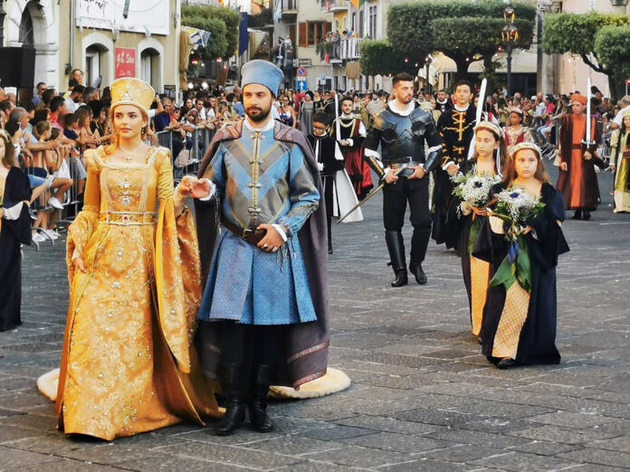 Nessun corteo storico dunque a Teggiano: come annunciato nei giorni scorsi, purtroppo quest’anno il COVID 19 ha impedito lo svolgimento della 27^ edizione de “Alla Tavola della Principessa Costanza”. Una intera comunità ha dovuto rinunciare alla riproposizione dei grandiosi festeggiamenti svoltisi nel 1480 in occasione delle nozze tra Antonello Sanseverino, Principe di Salerno e Signore di Diano, e Costanza, figlia di Federico da Montefeltro, il grande Duca di Urbino. Non si tratta di una rinuncia da poco: a partire dalla prima edizione della manifestazione, per ben 26 anni l’estate della Città d’Arte del Vallo di Diano è stata scandita dai ritmi della “sua” Costanza. Un periodo nel quale “Alla Tavola della Principessa Costanza” ha superato i confini regionali, affermandosi come rinomata kermesse di respiro nazionale, capace di attirare a Teggiano più di 100mila visitatori nell’arco di tre giorni. Numeri eccezionali, che però a causa della pandemia ancora in corso e delle relative misure di sicurezza hanno reso ingestibile l’evento: di qui la decisione dolorosa ma necessaria di rinviare la 27^ edizione all’estate del 2021.