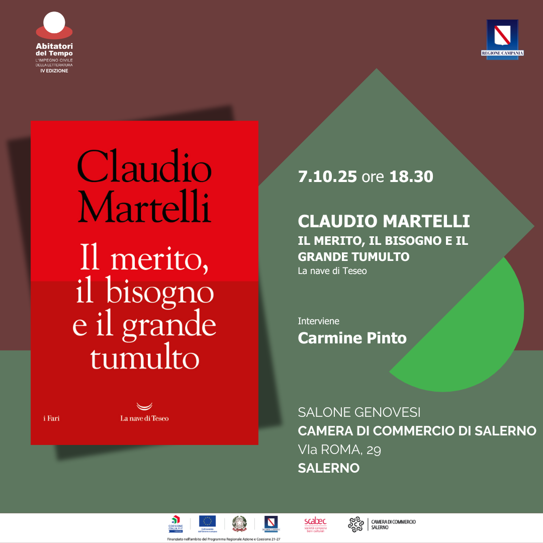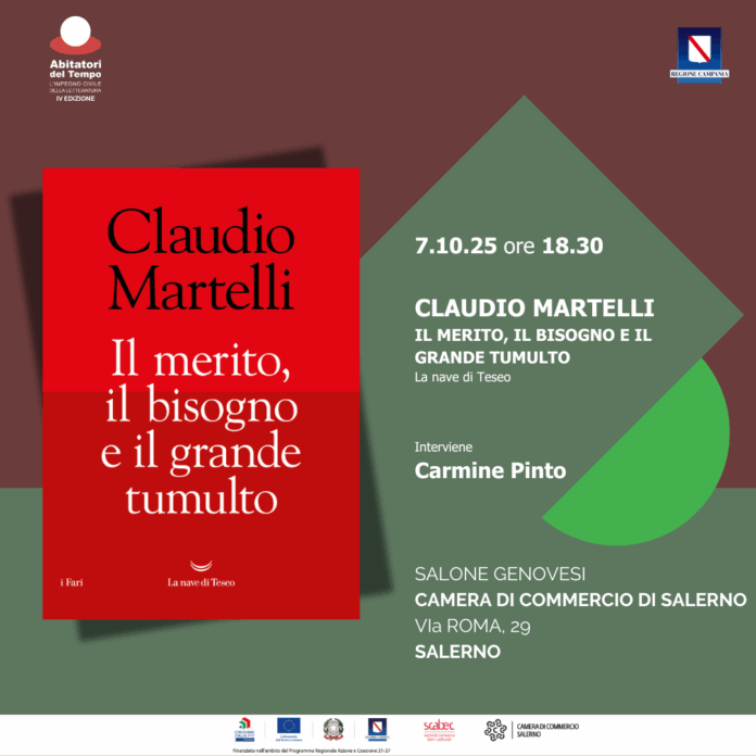Martedì 7 ottobre, ore 18.30, presso il Salone Genovesi della Camera di Commercio di Salerno, a dare vita a una riflessione autorevole sul nostro tempo Claudio Martelli, autore de “Il merito, il bisogno e il grande tumulto” (La nave di Teseo), attraverso la storia di una vita di impegno civile e pubblico, e animata in pari misura dalla forza dell’indignazione e dal dovere della speranza. Interviene Carmine Pinto.