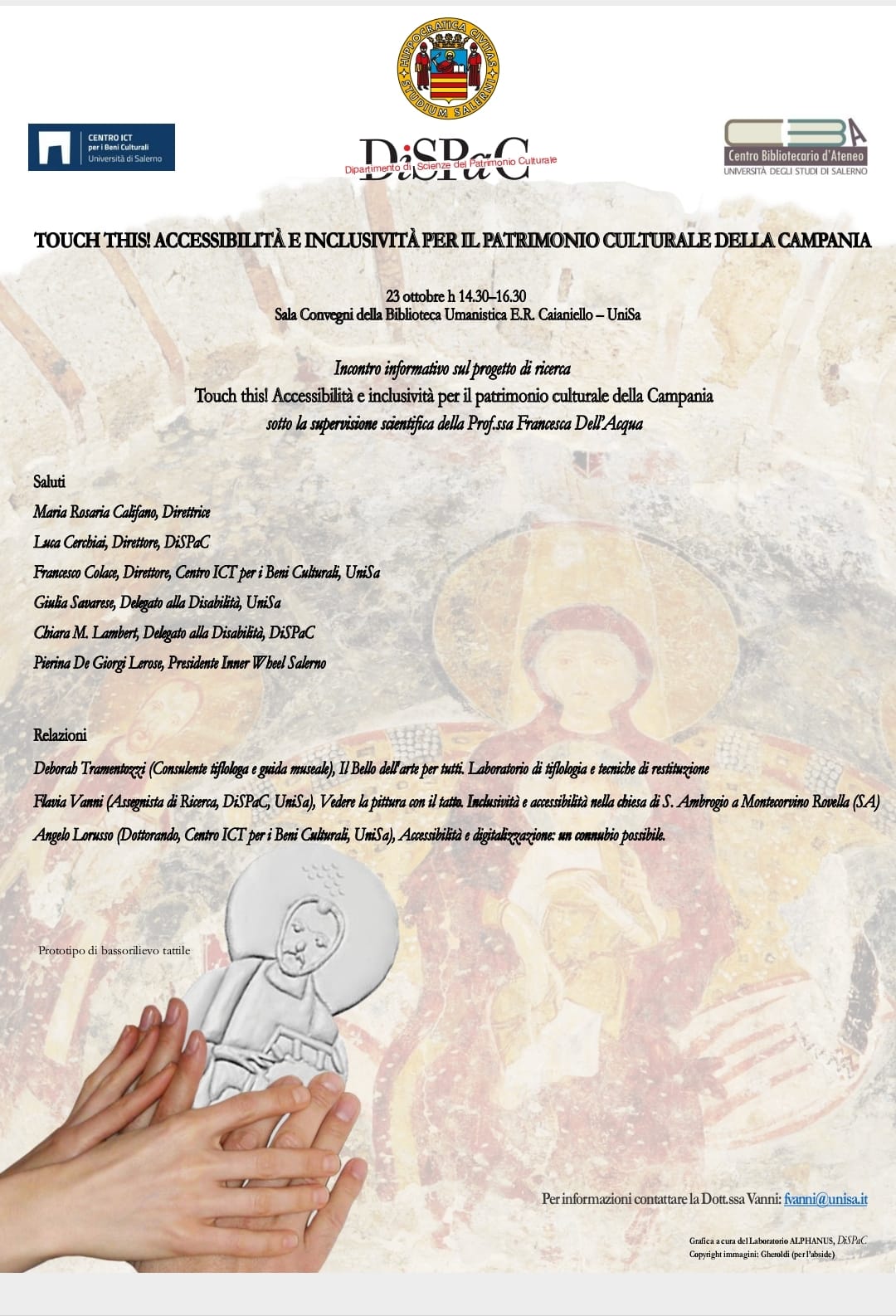 Incontro informativo sul progetto di ricerca TOUCH THIS! ACCESSIBILITÀ E INCLUSIVITÀ PER IL PATRIMONIO CULTURALE DELLA CAMPANIA sotto la supervisione scientifica della Prof.ss Francesca Dell’Acqua