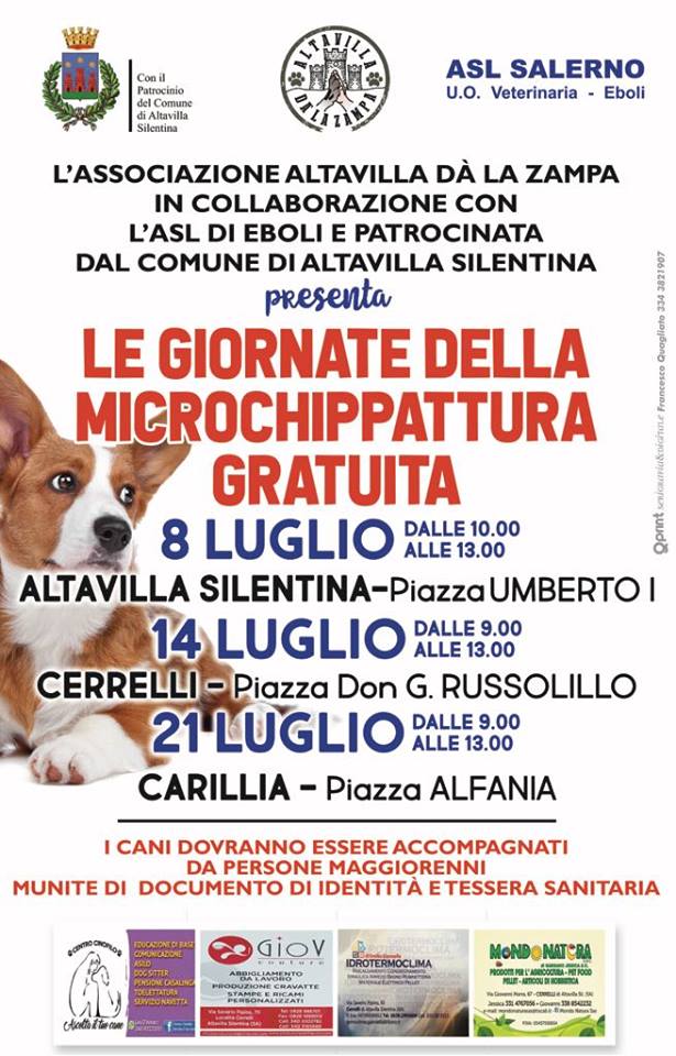 Il Comune di Altavilla Silentina in sinergia con l’Associazione Altavilla Dà La Zampa e l’Asl di Eboli presenta “LE GIORNATE DI MICROCHIPPATURA GRATUITA”.