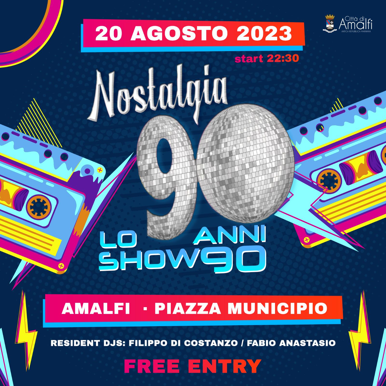 Si balla in Piazza Municipio ad Amalfi domenica 20 agosto alle ore 22.30 con il grande party di Nostalgia ‘90. Una serata disco che trasformerà Amalfi in un dancefloor in un itinerario sonoro dedicato al revival degli anni ’90, tra disco music, beat travolgenti, icone pop della musica internazionale, contaminazioni soul e r&b delle grandi voci della black music, suoni elettronici.
