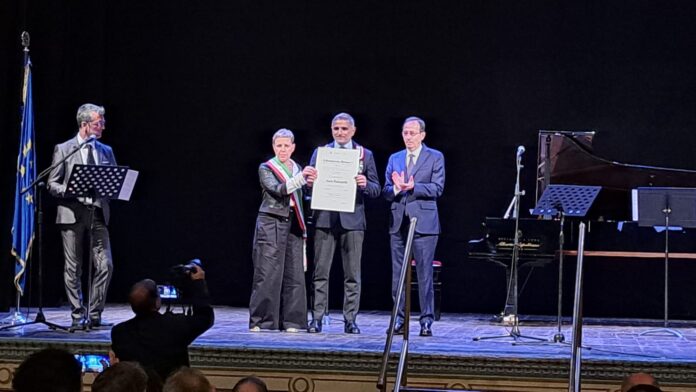 Nell’estate del 2019, il 2 luglio, Adelio Lanzalotti, Carabiniere Ausiliare in congedo, stava percorrendo, a bordo della sua auto, Via Monsignor Forte, nel Comune di Futani. Tornava da un periodo di vacanza trascorso a Marina Di Camerota con la moglie Luana e con i figli Angelo e Gabriele. A un certo punto si accorge che del fumo esce da una casa in lontananza. Avvicinatosi, si rende conto che dal garage annesso ad una palazzina di due piani si stava propagando un incendio, causato dal cortocircuito di un frigorifero. Dopo aver immediatamente chiamato i Vigili Del Fuoco, guardando meglio all’interno del locale terraneo, si accorge che tra il fumo si muoveva una figura umana: era un ragazzino che, rientrato in casa prima della nonna, che aveva accompagnato a fare la spesa, spaventato, non sapeva cosa fare. Immediatamente Adelio, dopo aver spostato la sua auto, con all’interno i suoi familiari, lontano dalla casa dove si era sviluppato l’incendio, senza esitazione, incurante del pericolo, senza alcuna protezione, vestito con un bermuda e una maglietta, corre in soccorso del ragazzino. Dopo aver aggirato le fiamme, con l’esperienza acquisita dopo aver frequentato un corso antincendio nell’Arma, afferra il ragazzino di 12 anni e lo porta fuori, lontano dalla casa. Assicuratosi che stesse bene, e che in casa non ci fosse nessun altro, ritorna nel garage della casa dove aveva notato la presenza di due estintori. Li prende e immediatamente provvede ad estinguere l’incendio, prima che le fiamme avvolgessero l’auto parcheggiata all’interno del garage. Nel frattempo era giunto anche un Brigadiere in servizio nella locale Stazione dei Carabinieri che, servendosi di una pompa presente nel giardino di casa, lo aiuta a completare le operazioni di spegnimento dell’incendio. Il quarantottenne Adelio Lanzalotti, di Montecorvino Rovella, restauratore ed ebanista, scultore del legno, Carabiniere Ausiliare in congedo, è stato nominato “Cavaliere al Merito della Repubblica Italiana” in occasione delle celebrazioni per il 78° anniversario della nascita della Repubblica. Nello storico “Teatro Verdi” di Salerno, a consegnargli questa mattina l’onorificenza “al merito della Repubblica italiana”, concessa dal Presidente della Repubblica Sergio Mattarella ai cittadini della nostra provincia, è stato il Prefetto di Salerno, Francesco Russo, insieme alla Vicesindaca del Comune di Montecorvino Rovella Milena Salvatore. Lanzalotti, commosso, alla presenza della moglie Luana Di Paola, dei figli: Angelo, di dieci anni, che suona il clarinetto nella “Banda di Montecorvino”, di Gabriele di sette anni, della sorella Miriam e della madre Caterina De Marco, ha ringraziato il Prefetto Francesco Esposito e la Vicesindaca Milena Salvatore che ha rappresentato il Sindaco Martino D’Onofrio.
