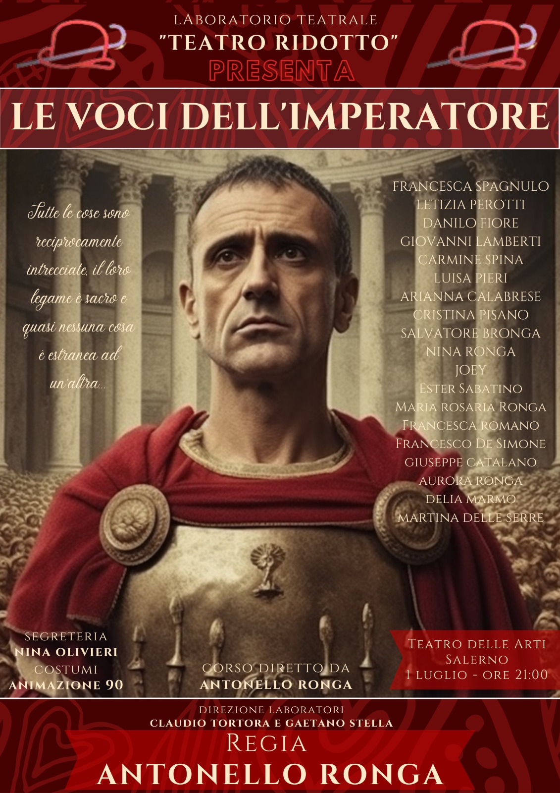 Sarà lo spettacolo dal titolo “Le voci dell’Imperatore”, per la regia di Antonello Ronga, a dare il via, domani alle ore 21, al Teatro Delle Arti, agli spettacoli di fine anno degli allievi del laboratorio teatrale del Teatro Ridotto di Salerno diretto da Claudio Tortora e Gaetano Stella.