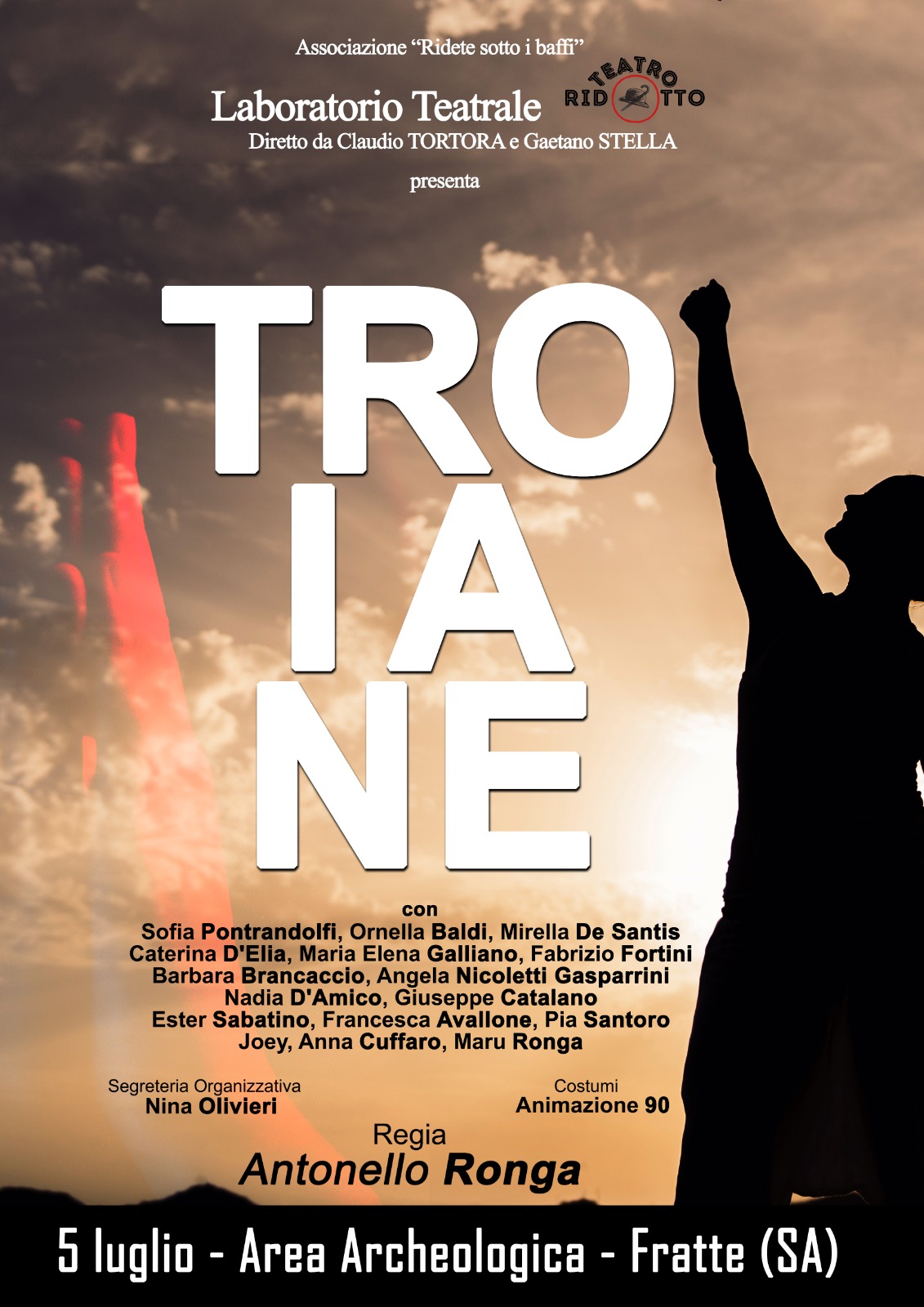 Ultimo appuntamento il 5 luglio, alle ore 21, all’Area Archeologica di Fratte, co “Troiane” diretto da Antonello Ronga. Protagonisti saranno Sofia Pontrandolfi, Ornella Baldi, Mirella De Santis, Caterina D’Elia, Maria Elena Galliano, Fabrizio Fortini, Barbara Brancaccio, Angela Nicoletti Gasparrini, Nadia D’Amico, Giuseppe Catalano, Ester Sabatino, Francesca Avallone, Pia Santoro, Joey, Anna Cuffaro e Marù Ronga.