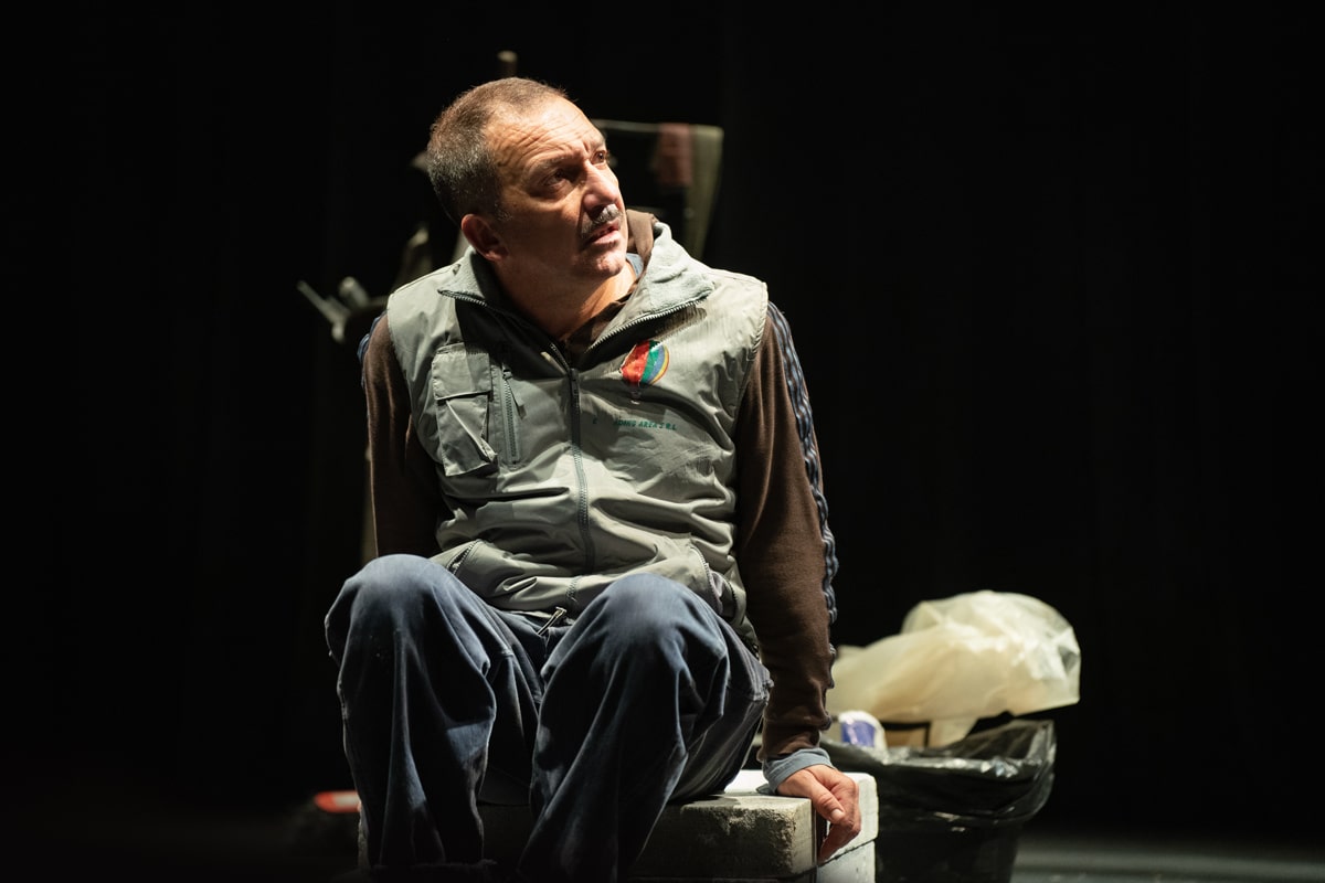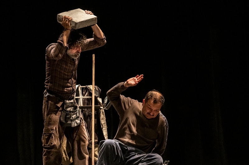 In una notte infinita e sospesa, due muratori sono al lavoro per chiudere con un muro il palcoscenico di un teatro in disuso: l’area è stata ceduta al supermercato confinante che deve ampliare il magazzino. È un abuso, bisogna lavorare in fretta, e i due si impegnano con tutte le loro forze per finire prima che venga il giorno. Ma il teatro è un luogo magico, e profanarlo significa scatenare presenze nascoste, irrazionali, capaci di scavare voragini di emozioni nel cuore dei due ignari manovali. E così i due muratori sono protagonisti dell’incontro con una enigmatica e sensuale signorina Giulia che scompiglierà il loro destino e quello del teatro. Una commedia che alterna momenti comici a momenti poetici, una storia di amicizia, rivincita e conflitti sociali, un inno d’amore al teatro.