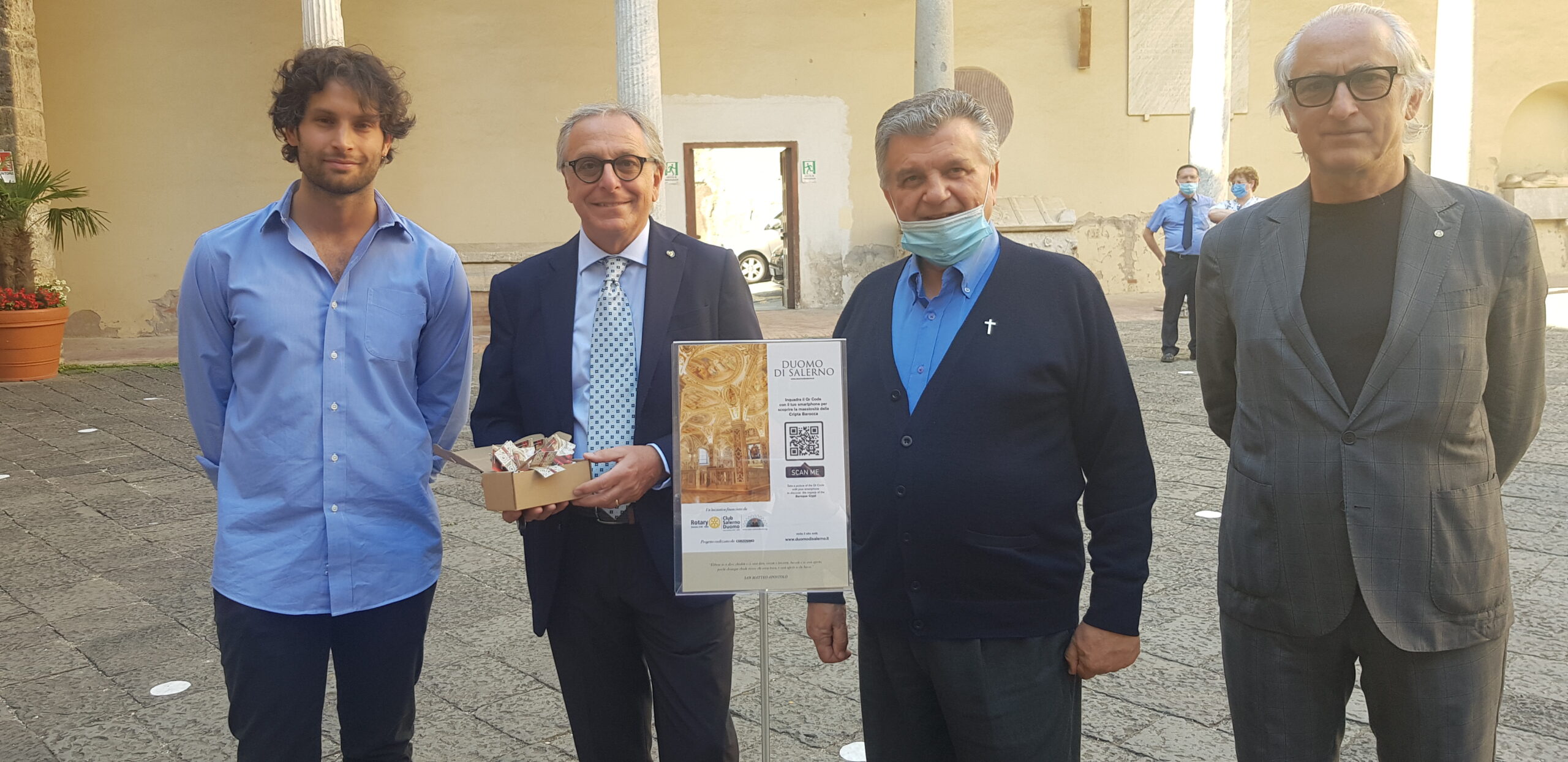 Sabato pomeriggio, nella Cattedrale di Salerno, sono stati posizionati i pannelli in plexiglas illustrativi con i QR Code decrittando i quali si potrà accedere al sito www.duomodisalerno.it e quindi all’emozionante tour virtuale che consentirà di ammirare le immagini più belle e suggestive del Duomo di Salerno, anche quelle che solitamente non sono accessibili ai visitatori. A posizionare i pannelli nei punti di maggiore interesse della Cattedrale, partendo dal quadriportico e fino alla Cripta, sono stati i componenti dello studio “Camera Chiara” di Armando, Pietro e Nicola Cerzosimo che hanno realizzato l’importante e innovativo progetto “Duomo Experience” fortemente voluto dal Presidente del “Rotary Club Salerno Duomo”, il dottor Giuseppe Cimmino:” Un progetto di cui andiamo fieri che, insieme a tutti i soci del Club, abbiamo voluto realizzare per contribuire a valorizzare e far conoscere, anche in modo virtuale, questo gioiello dell’architettura salernitana. Il nostro Club – ha spiegato il Presidente Cimmino – riconosce nel monumento più significativo della città il proprio simbolo che è riportato anche nel nostro logo”. Ad accogliere con entusiasmo l’iniziativa sono stati il Vescovo di Salerno, Monsignor Andrea Bellandi, ed il parroco della Cattedrale, Don Michele Pecoraro, che ha sottolineato l’importanza del progetto:” Il Duomo è la casa di tutti e rivelarla attraverso la suggestione di queste immagini e questi video rappresenta un messaggio evangelico molto importante che ci eleva e ci fa avvicinare a Dio”. Il progetto è stato spiegato tecnicamente da Nicola Cerzosimo che ne ha curato la regia:” In circa tre mesi sono stati realizzati quattro filmati, con un drone, e scattate foto del Duomo da varie angolazioni. E’ stato realizzato un sito web fruibile per la classica visualizzazione da computer ed anche da smartphone o tablet per la visione di tutti i contenuti video-fotografici”. Il sito web, che ha una veste grafica elegante ed intuitiva, è visitabile anche in maniera indipendente dalla visita alla Cattedrale:” Intende essere uno strumento utile sia a tutti coloro che varcheranno il portone dei due leoni della Cattedrale, ma anche a chi si collega da remoto” – ha spiegato Nicola Cerzosimo – “ Uno strumento multimediale pensato per i turisti, ma anche per i fedeli, con il chiaro obiettivo di far conoscere sempre più, anche grazie alla rete, l’enorme tesoro custodito in Cattedrale. Si potranno realizzare anche cartoline digitali da condividere”. Nei filmati realizzati, l’attore Enzo Marangelo, racconta tutta la storia della Cattedrale, sin dalla sua fondazione. ”Il turista che inquadrerà il QR Code, ad esempio nello splendido quadriportico, vedrà partire automaticamente sul suo smartphone il filmato che ne racconta l’architettura e la storia. Lo stesso per gli altri punti della Cattedrale” – ha spiegato Cerzosimo – “ I visitatori accederanno al video scegliendo in totale autonomia cosa approfondire, immergendosi completamente in questa nuova esperienza visiva, trasformando un viaggio culturale in un’esperienza digitale grazie alle spettacolari bellezze artistiche offerte dal Duomo di Salerno”.(Pubblicato su “Il Quotidiano del Sud” edizione di Salerno).