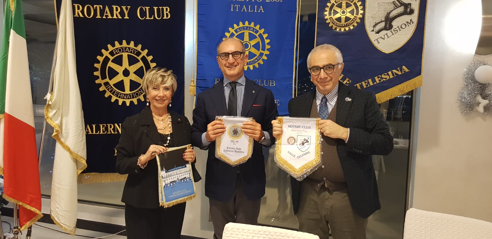 Il Rotary nacque nel 1905 a Chicago dall’incontro di un giovane avvocato, Paul Harris, proveniente dal Vermont, con altri tre uomini; si costituì come Club esclusivamente maschile. Solo nel 1989, grazie ad una risoluzione del Consiglio di Legislazione, si stabilì che l’iscrizione ai Rotary Clubs era consentita anche a persone di sesso femminile. Da allora ne è stata fatta di strada e  sono stati tanti i Club Rotary nel mondo che hanno avuto  tra i soci delle donne , alcune delle quali sono state nominate anche  Presidenti dei Club:  la prima ad esserlo a Salerno  fu la dottoressa Caterina Petronella che ricoprì la carica di presidente del “Rotary Club Salerno Duomo” nell’anno sociale 2008/2009,  seguita l’anno successivo (2009/2010) dalla dottoressa Rosalia Galano, presidente del “Rotary Club Salerno”.  Attualmente sono ben tre le donne presidenti dei Club Rotary di Salerno: la professoressa Maria Rosaria Lombardi, del  “ Rotary  Club Salerno a. f. 1949”; la dottoressa Marilena Montera, del “Rotary Club Salerno Est” e la dottoressa Antonella Cocurullo del “Rotary Club Salerno Nord dei Due Principati”. Martedì sera, al “Grand Hotel Salerno” è stato ospite del “Rotary Club Salerno Duomo”, presieduto dal dottore Vincenzo Abate, il “  Rotary Club Torino Palazzo Reale”, del “Distretto Rotary 2031”, presieduto dalla già professoressa di lettere Adriana Siniscalchi, costituito da venti soci di cui diciannove donne e un solo uomo: “Si tratta del   socio Crescenzio  Lipani che insieme ad un altro socio, che è andato via, e a tutte noi, ha fondato il nostro Club nel 2020” – ha spiegato la presidentessa Siniscalchi – “ Eravamo un gruppo di amiche  molto unite che provenivano  da una comune esperienza di associazionismo. Il nostro Club padrino è il “Rotary Club Re Umberto”. La professoressa Siniscalchi, che è nata a Salerno ma da quarant’anni vive a Torino, è la seconda presidente del Club: ” La prima a ricoprire questa carica è stata Franca Rigat Cremasco”.