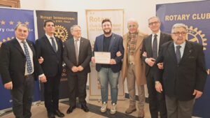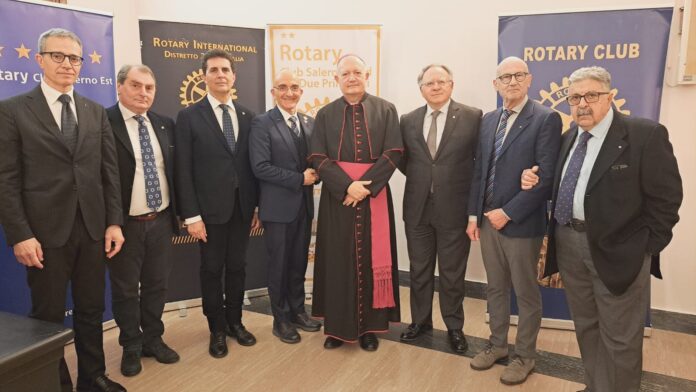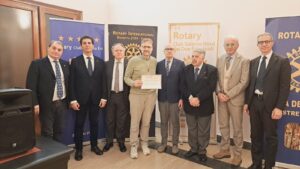 Alla cerimonia di consegna degli attestati ha partecipato il Vescovo di Salerno Andrea Bellandi, che ha sottolineato l’importanza della collaborazione tra le istituzioni e le associazioni:” È fondamentale avere nella nostra società delle realtà come il Rotary, che cercano di diffondere una mentalità di solidarietà, di condivisione, di farsi carico e dare aiuto a chi ha più bisogno”. Il Past Governor del “Distretto Rotary 2101”, il dottor Ugo Oliviero, ha sottolineato l’importanza della solidarietà:” È un valore fondante dell’attività del Rotary che si esplica attraverso le aree d’intervento della “Rotary Foundation”. A spiegare il progetto “Lotta alla povertà “è stato Don Antonio Romano, Vicario Episcopale per la Carità, lo Sviluppo Sostenibile e la Giustizia, della Diocesi:” In questo particolare momento storico è aumentata la popolazione salernitana che ogni giorno si reca alla Mensa dei Poveri San Francesco. Serviamo circa duecento pasti al giorno: diamo da mangiare a circa ottanta persone al giorno a tavola e distribuiamo altri settanta pasti da asporto. La sera prepariamo altri settanta pasti per la cena degli ospiti dei due dormitori di Via Bastioni, presso il “Polo della Carità” di Salerno, che ospita 35 persone ogni giorno, e per l‘altro dormitorio di 27 posti, in Piazza San Francesco, che ugualmente è sempre pieno, come lo è anche quello di 17 posti gestito dai volontari dei Padri Saveriani. La domenica poi serviamo i pasti presso la Chiesa del Volto Santo”. A rappresentare il dottor Guido Oppido, presidente dell’associazione nazionale “Una Voce per Padre Pio” è stato il Vicepresidente Gianluca Guida che ha ricordato le finalità del progetto “Cuori Ribelli”:” Il dottor Oppido, insieme alla dottoressa Claudia D’Andrea, visita i bambini in Africa affetti da cardiopatia congenita, una patologia abbastanza diffusa: poco meno di un bambino su cento nasce con una malformazione del cuore che, nel 99% dei casi, ha bisogno di essere trattata con un intervento chirurgico. Spesso nei primi giorni di vita. Il dottor Oppido frequentemente opera i bambini più gravi all’Ospedale Monaldi di Napoli. Sono appena tornato dalla Costa d’Avorio dove quattordici medici che partecipano al progetto stanno effettuando dodici interventi di cardiochirurgia pediatrica. Altri diciannove interventi sono previsti in Camerun e questa notte arriverà un bambino dalla Costa d’Avorio che necessita di essere operato all’Ospedale Monaldi di Napoli dal dottor Guido Oppido. L’anno scorso siamo riusciti ad operare 120 bambini che erano destinati a morire”. Il dottor Roberto Mauri, Past Rappresentante Distrettuale del Rotaract del “Distretto Rotary 2101”, ha spiegato il progetto distrettuale rotaractiano “KANDÍA, ridiamo luce alla bellezza: “Con l’attuale Rappresentate Distrettuale, Maria Teresa Aveta, e tutti soci, stiamo realizzando varie attività di solidarietà in Burkina Faso, uno Stato dell’Africa occidentale. In collaborazione con l’associazione “Baobab – Amici di Tampellin” (Tampellin è il villaggio destinatario del progetto) che abbiamo conosciuto grazie a don Ciro, parroco della città di Angri, attraverso tante iniziative, coordinate dal responsabile del progetto Giuseppe Valerio Montesarchio del “Rotaract Club di Nola- Pomigliano D’Arco”, stiamo installando un impianto fotovoltaico nel villaggio”. Le conclusioni sono state affidate all’attuale Governatore del “Distretto Rotary 2101”, il dottor Antonio Brando, che ha ricordato l’importante progetto della “Polio Plus” dedicato all’eradicazione della polio nel mondo:” Prima dell’intervento del Rotary era presente in 120 paesi del mondo con trecentomila casi l’anno mentre oggi grazie al 99% di vaccinati, soltanto in due Paesi del mondo abbiamo poche decine di casi. Ogni anno vacciniamo quattrocento milioni di bambini in tutto il mondo per evitare che la Polio possa diffondersi nuovamente. Prevediamo per il 2026 l’eradicazione totale della Polio in tutto il mondo”. Il Governatore Antonio Brando ha anche ricordato la mission del Rotary:” Si occupa a trecentosessanta gradi del benessere della società, formando i nuovi leader. Il Rotary trasforma le vite, dona sorrisi e dà forma ai sogni. Attraverso la progettualità del Rotary cerchiamo di rendere il mondo un posto migliore in cui vivere”. Sono intervenuti per un saluto i rappresentanti dei presidenti dei Club Rotary Salernitani: Edoardo Ventura e Rino D’Alessio, che hanno lodato l’iniziativa portata avanti dai Past President dei Club Rotary Salernitani. Il professor Sessa ha ringraziato tutti i soci rotariani e i Past President, Tony Ardito e Alfredo Marra che, unitamente al Generale Gianfranco Milillo, hanno contribuito all’organizzazione del progetto “Memoria e Solidarietà” e, per il loro contributo: la “Camera di Commercio” di Salerno e la “Banca Montepruno”; per il loro patrocinio: la “Regione Campania”, la “Provincia di Salerno”, il “Comune di Salerno”, “Confindustria Salerno” e gli Ordini degli Avvocati di Salerno e Nocera Inferiore; per la loro sensibilità solidaristica : l’Arcidiocesi di Salerno e il “Comando Generale dell’Arma dei Carabinieri” . Presenti il Comandante Provinciale dell’Arma dei Carabinieri, il Colonnello Filippo Melchiorre, con il Luogotenente Pasquale Santoriello; per il Comandante Provinciale della Guardia di Finanza, il Colonnello Eduardo Margarita; il Direttore della “Banca Montepruno” Cono Federico, con il Segretario Generale Antonio Mastrandrea.