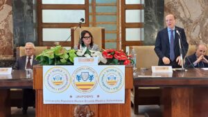 Con l’Inno di Mameli, suonato all’arpa dal Maestro Giuseppe Romano, è iniziata, nel Salone dei Marmi del Comune di Salerno, la giornata di consegna del “Premio Internazionale Scuola Medica Salernitana” che ogni anno viene assegnato ai personaggi illustri del panorama scientifico, artistico, culturale e giornalistico italiano e internazionale. La giornata di premiazione rientra nell’ambito delle “Giornate della Scuola Medica Salernitana”, giunte alla XXVI edizione, organizzate dalla “Università Popolare Nuova Scuola Medica Salernitana” presieduta dal Rettore, il professor Pio Vicinanza, con il professore Carlo Montinaro, Preside a Cathĕdra della “Università Popolare Nuova Scuola Medica Salernitana Il Rettore Pio Vicinanza ha ricordato che le “XXVI Giornate della Scuola Medica Salernitana” sono iniziate con l’inaugurazione della mostra fotografica “I Luoghi della “Scuola Medica Salernitana”:” Con le foto dei fotografi Francesco Siano e Corradino Pellecchia; con la presentazione in anteprima del libro “Un anno per volersi bene” di Vira Carbone, giornalista e conduttrice di RAI 1, con la partecipazione del professor Samir Sukkar, Direttore dell’Unità Operativa Diedetica e Nutrizione Clinica IRCCS dell’Ospedale San Martino di Genova e con la presentazione della “Scuola di Nutraceutica Salernitana Uniposms” curata dalla Preside, la professoressa Carmela Saturnino”. La prestigiosa statuina “Lumen et Magister” che rappresenta un medico dell’Antica Schola Medica Salernitana, simbolo del “Premio Internazionale Scuola Medica Salernitana” è stata assegnata alla Carriera, al Professor Orazio Schillaci; Ministro della Salute, assente per un impegno istituzionale. Il premio è stato ritirato dal professor Antonio Giordano, membro del Consiglio Superiore di Sanità. Il Premio Medico dell’Anno ed alla Carriera è stato assegnato al Professor Matteo Bassetti, Direttore della Clinica Malattie Infettive dell’Ospedale Policlinico San Martino di Genova che, collegato da remoto, si è detto onorato per aver ricevuto l’importante premio:” Sono davvero orgoglioso di ricevere questo prestigioso riconoscimento per il quale ringrazio gli organizzatori e in particolare il Professor Pio Vicinanza. Questo premio va nella direzione di ciò che sto cercando di fare: la divulgazione della medicina attraverso canali che mi consentono di arrivare alla gente”. Premio “Lumen Et Magister”, alla Cultura al dottor Maurizio De Giovanni, scrittore e sceneggiatore noto per i suoi romanzi che hanno dato origine a tre serie televisive: “I Bastardi di Pizzofalcone”, “Mina Settembre” e “Il Commissario Ricciardi”. Lo scrittore napoletano, che ha ricevuto con gioia il premio, ha affermato: “La Scuola Medica Salernitana rappresenta una stella polare culturale per la Regione Campania”. Il Premio “Lumen Et Magister”, per l’Arte è stato assegnato al Maestro Maurizio Gallo di Montecorvino Rovella dove, con passione, realizza le sue opere in rame che sono state esposte in tutto il mondo:” Mio nonno e mio padre mi hanno trasmesso l’amore per l’arte del rame”. Premio “Lumen Et Magister alla Carriera è stato assegnato al professor Francesco Saverio Minnini, Docente di Economia Sanitaria e Economia Politica presso la Facoltà di Economia dell’Università di Roma “Tor Vergata e Professore di Economia e Programmazione Sanitaria presso il Dipartimento di Statistica dell’Università degli Studi di Roma “La Sapienza”. Capo Dipartimento della Programmazione dei Dispositivi Medici, del Farmaco e delle Politiche del Ministero della Salute. Il professor Minnini ha spiegato che la Sanità italiana deve essere considerata come un investimento. Il Premio “Lumen Et Magister” alla Ricerca è stato assegnato al Professore argentino Miguel Mostafa, Preside della Facoltà di Scienze e Tecnologia presso la Temple University di Philadelphia (USA) noto per la sua ricerca sulla fisica delle particelle ad alta energia, sugli acceleratori di particelle e sull’origine dei raggi cosmici: “La nostra missione è quella di fare ricerca per migliorare il benessere umano. La Scuola Medica Salernitana è stata un faro di sapere per tutto il mondo occidentale”. Premio “Lumen Et Magister” alla Carriera al Professor Christopher Rowland Payne, Professore Universitario presso l’Université de Paris-Créteil e dermatologo consulente onorario presso il “Royal Marsden Hospital di Londra e Sutton”. Il professor Payne ha affermato che “L’Università della Scuola Medica Salernitana è un esempio per il futuro”. “Le donne sono state le artefici della Scuola Medica Salernitana e una tra queste è stata Trotula De Ruggiero”, ha spiegato il professor Carlo Montinaro, e la statuina “Trotula”, raffigurante la medichessa Trotula de Ruggiero, è stata assegnata, alla Carriera, alla Professoressa Raffaella Buzzetti, Ordinario di Endocrinologia presso l’Università “La Sapienza” di Roma; Direttore dell’Unità Operativa di Diabetologia presso il Policlinico Umberto i di Roma; Presidente della Società Italiana di Diabetologia; Membro della Società Italiana di Endocrinologia. Autrice di oltre 200 pubblicazioni scientifiche. La professoressa Buzzetti, ha ricordato il grande lavoro fatto, nel Medioevo, dall’insigne medichessa Trotula De Ruggiero:” Portò con coraggio l’innovazione nella medicina, nella ginecologia e nella diabetologia. Noi donne abbiamo raggiunto tantissimi traguardi nell’ambito della medicina ma c’è ancora tanto da fare per consentire anche alle donne di raggiungere ruoli apicali”. “Premio Trotula” per la Ricerca è stato assegnato alla professoressa Liliana Sytnyk, dermatologa e dermatochirurga consulente in Ucraina, che esercita a Londra, presso la Devonshire Dermatology dove promuove un approccio olistico integrato alla salute della pelle e alla medicina estetica, che integra la sua formazione specific