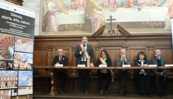 La Sindaca di Padula Michela Cimino e il Sindaco di Calci Massimiliano Ghimenti questa mattina hanno confermato, nel refettorio della Certosa di Calci, il “Patto di Gemellaggio” tra i due rispettivi complessi monumentali per avviare una promozione integrata delle due Certose, finalizzata alla conoscenza e alla divulgazione delle ricchezze storiche, artistiche e naturalistiche dei due luoghi, tramite scambi culturali, visite guidate e convegni.