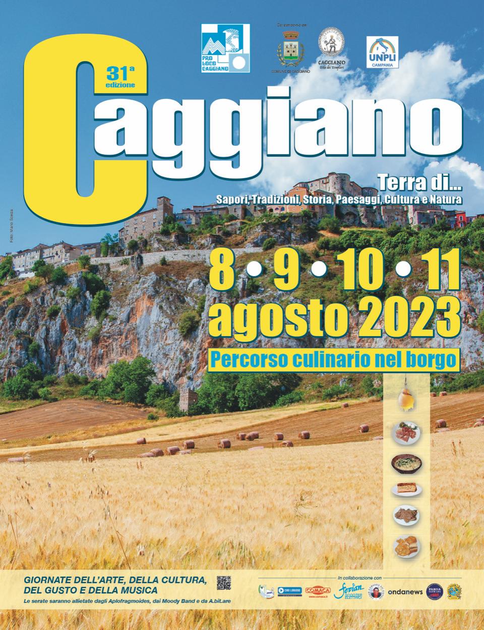 A partire da martedì 8 agosto e fino a venerdì 11 agosto, le vie del borgo di Caggiano ospiteranno la 31^ edizione del Percorso Culinario- Terra di…Sapori, Tradizioni, Storia, Passioni, Cultura e Natura. La manifestazione si svolgerà, come di consuetudine, lungo le vie di Caggiano per degustare i 5 piatti della tradizione culinaria: