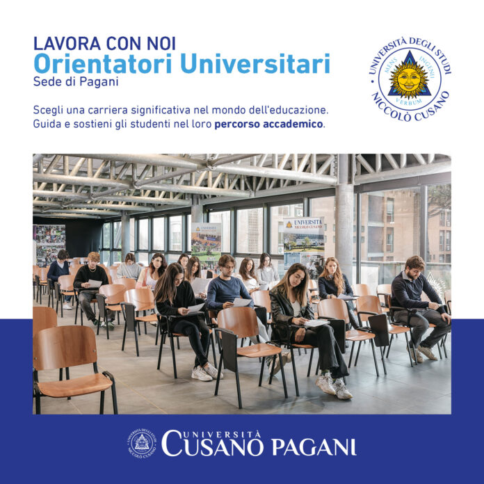 L’Università Unicusano Learning center di Pagani (Sa) è alla ricerca di persone appassionate e competenti per ampliare il proprio team di Orientatori, sottolineando il suo impegno a guidare gli studenti verso il successo accademico e professionale.