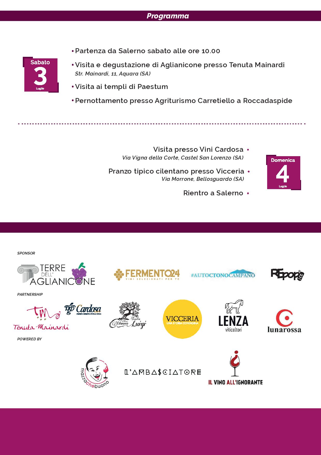 Partiranno da Salerno e le visite saranno costellate da tappe archeologiche e turistiche, unendo in un solo connubio l’enoturismo della costa sud campana, fino ad attraversare l’entroterra presso la Capitale dell’antico autoctono, Castel San Lorenzo. A completare lo scenario, pasti tipici e folkore cilentano forniranno ai 10 messaggeri venuti da tutta Italia un ottimo motivo per promuovere e consigliare una vacanza in CIlento, una terra che aldilà del mare, offre anche spettacolari siti turistici ed ottimo vino.