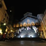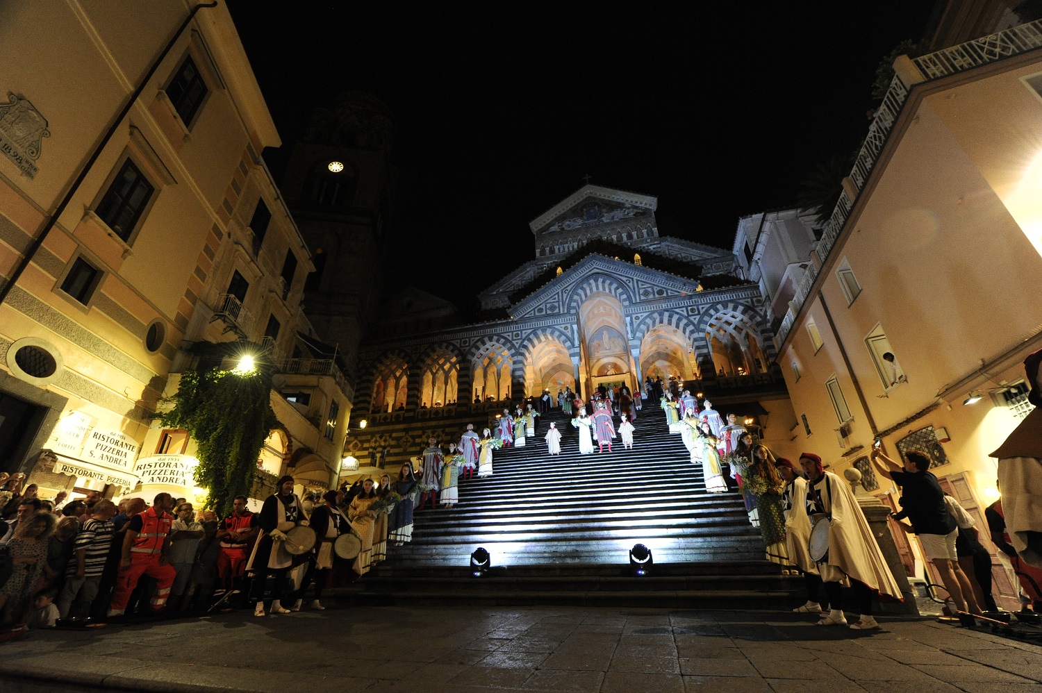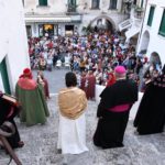 Dopo la cerimonia d’investitura ad Atrani, il corteo storico si è diretto verso Amalfi, per la presentazione ufficiale del Magister alla popolazione, sulle scale monumentali del Duomo di Amalfi. Con i figuranti schierati lungo la scalea, Lia Rumma ha salutato la città e le persone assiepate in piazza Duomo, con un sentito arrivederci a presto alla città che è stata teatro sì di una rovoluzione dell’arte, ma anche, come ha sottolineato nel corso dell’intervista ufficiale, di alcuni dei momenti di più intensa gioia e creatività mai vissuti in vita sua.
