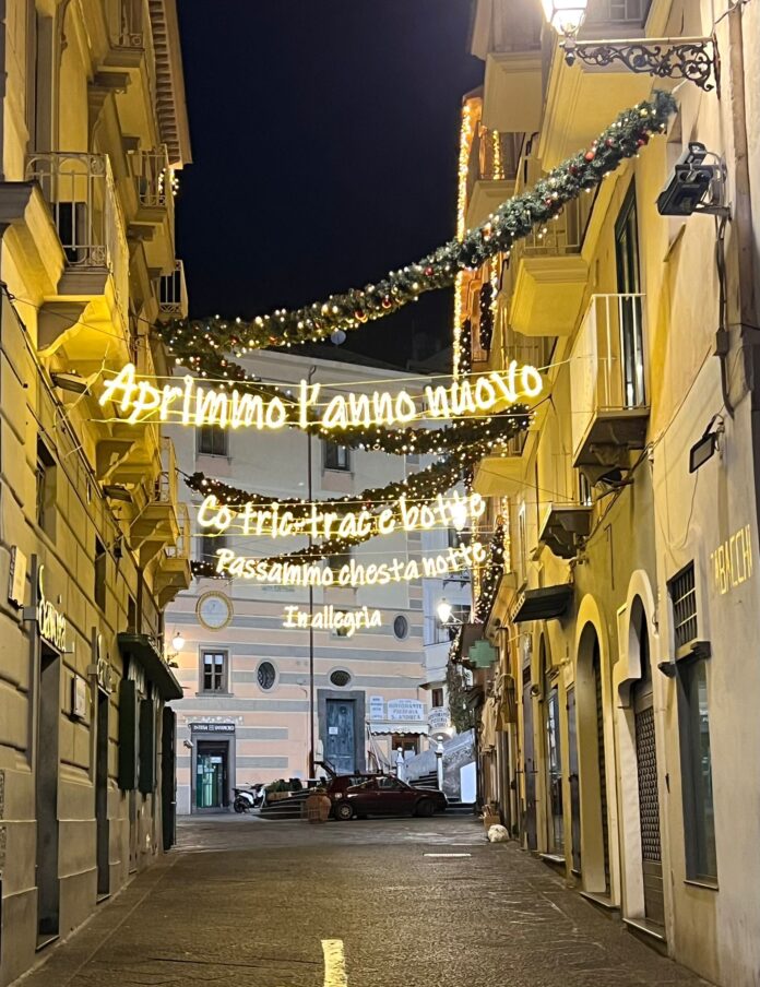 «Aprimmo l’anno nuovo co tric-trac e botte passammo chesta notte In allegria» così recita l’incipit della beneaugurante canzone de «Lo Capo d’Anno» che ad Amalfi per queste festività diventa luminaria di Natale.