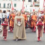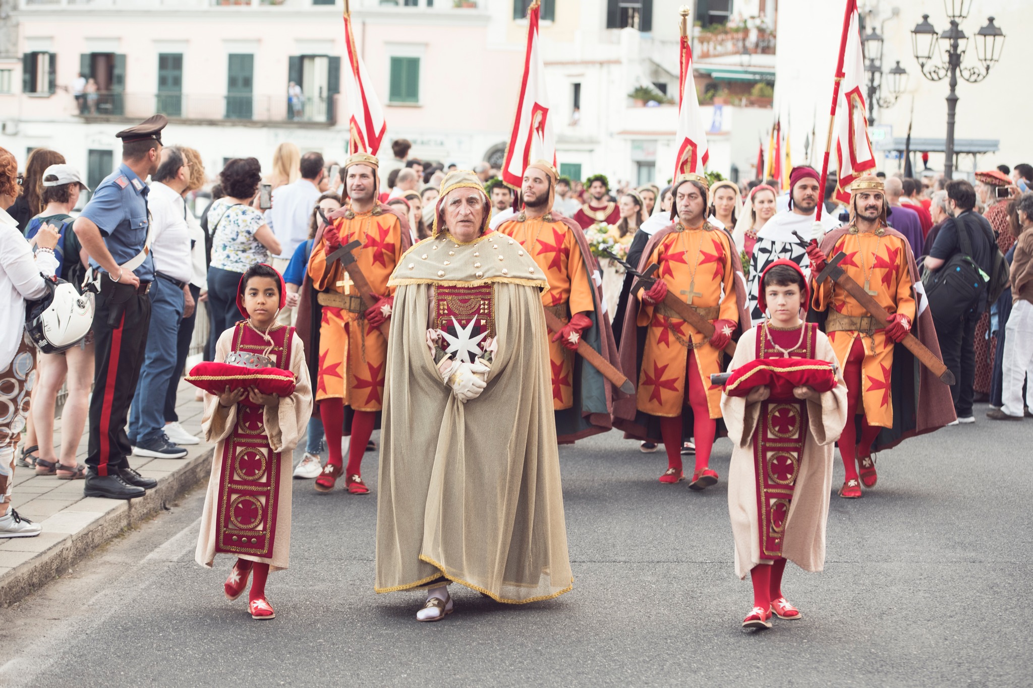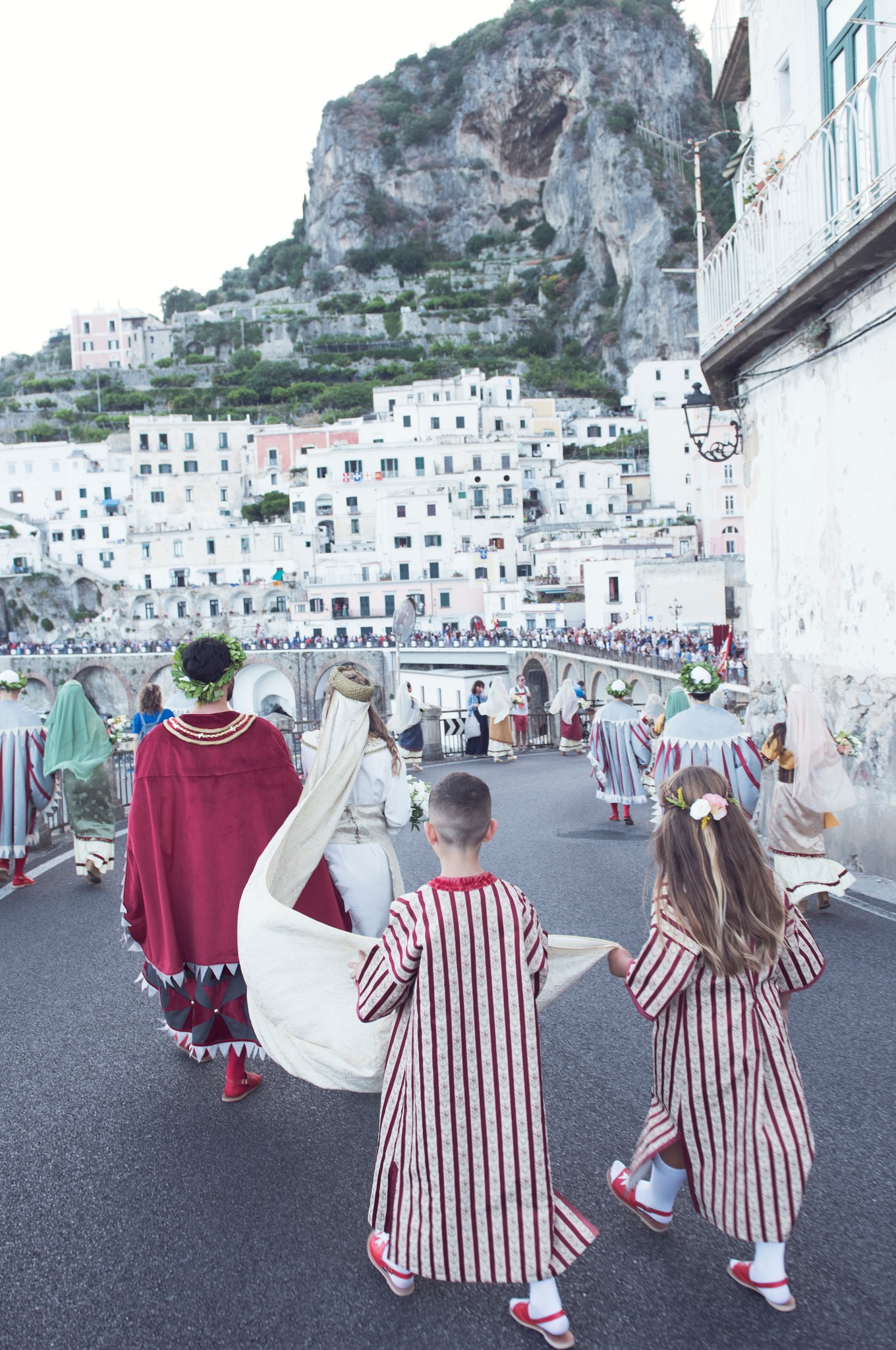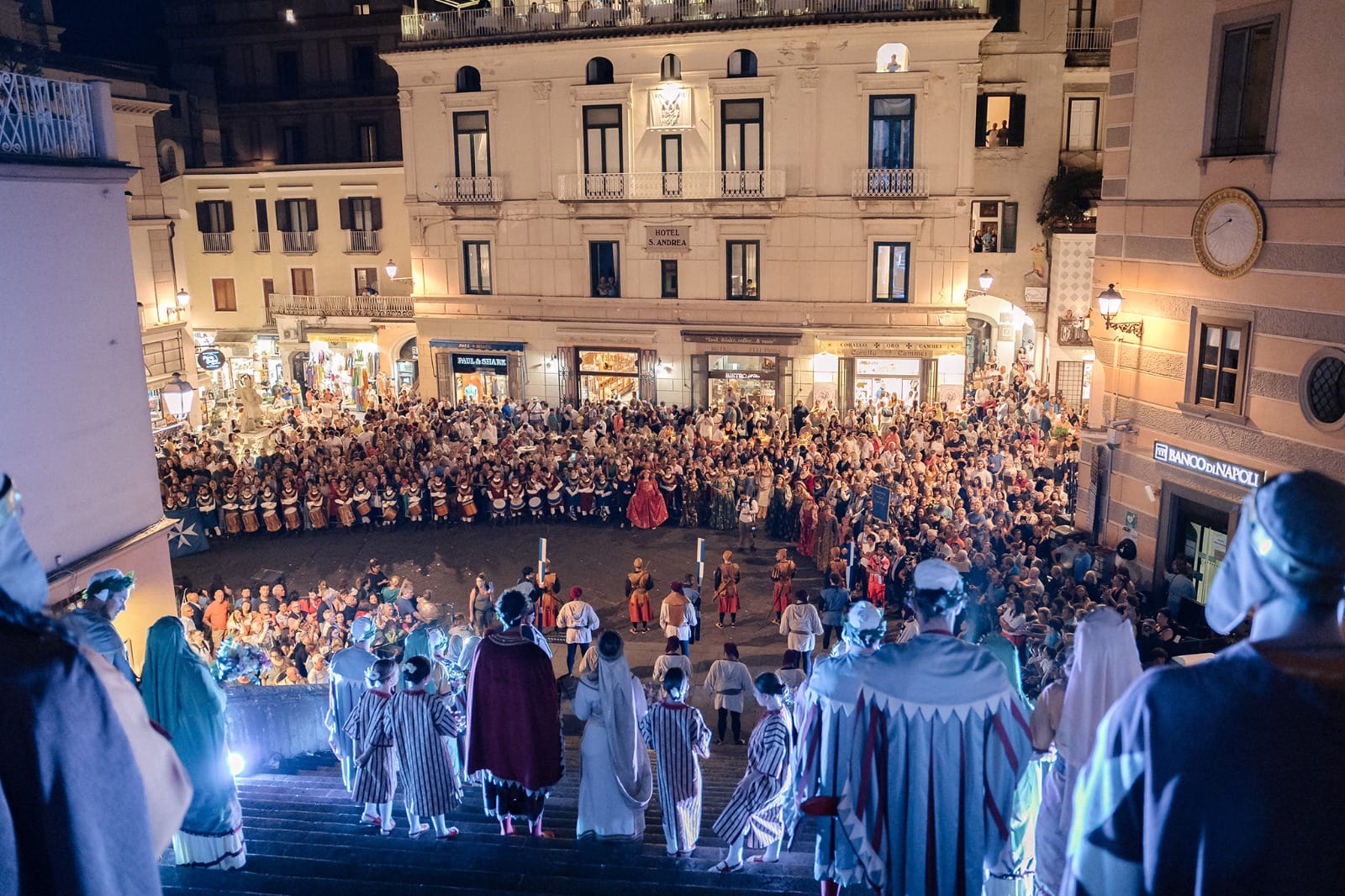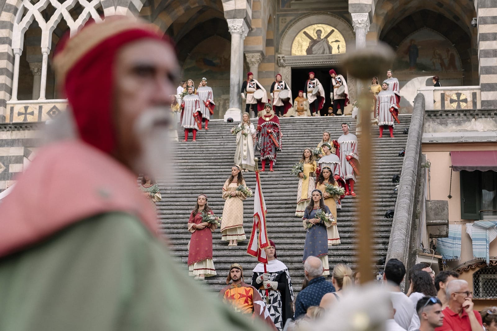 Un appuntamento che coinvolge tutta la Costiera a cominciare dalla vicina Atrani, da cui, dopo l’abbraccio della folla ai quattro equipaggi (la giornata di domani, sabato 17 maggio 2025, prevede alle ore 17.45 il palio remiero con gli equipaggi femminili, una delle grandi novità di questi ultimi anni, che si sfideranno lungo lo specchio di mare compreso tra Marmorata e Atrani, e a seguire, in Piazza Umberto I ad Atrani, presentazione dei quattro equipaggi maschili che domenica 18 maggio 2025 si daranno battaglia su un percorso di duemila metri) si snoderà il corteo storico con quasi 300 figuranti in abiti d’epoca.