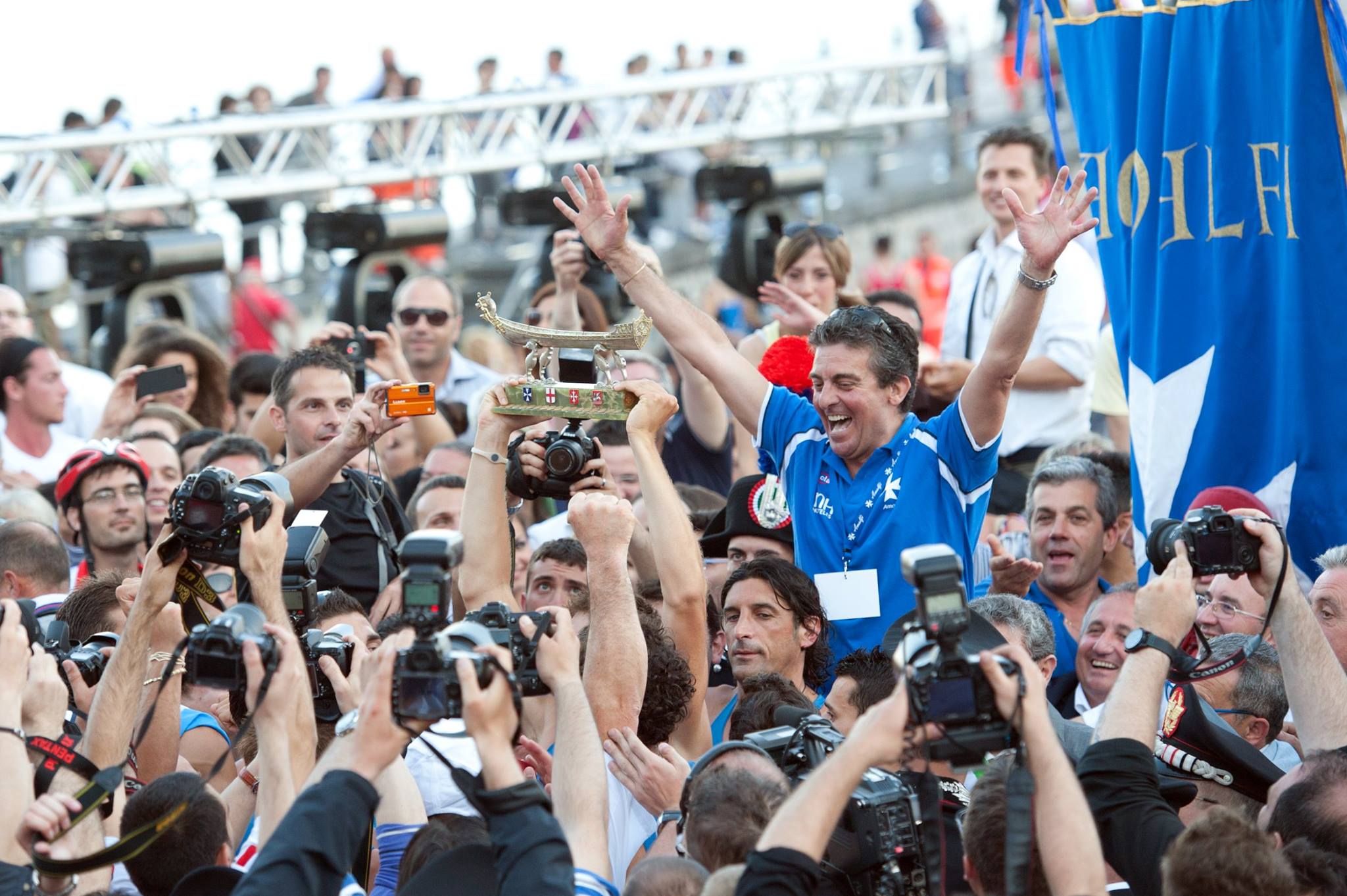 Il vessillo frustato dal vento, la spuma del mare che sale impetuosa e i colori dei quattro galeoni di Amalfi, Genova, Pisa e Venezia che si danno battaglia rievocando, solo agonisticamente, quell’accanita lotta per l’egemonia dei traffici e della marineria. E’ questa l’immagine della forza. E’ questa l’immagine dei 32 vogatori che spingono a colpi di remo le quattro imbarcazioni sullo specchio di mare in cui i monti della Costiera strapiombano con una crudezza quasi dolomitica. Fotogrammi che rimandano ai fasti del Medioevo quando le galee delle Antiche Repubbliche Marinare solcavano il Mediterraneo sulla rotta verso nord Africa e Medio Oriente, dove istituirono fondachi e colonie intrattenendo proficui rapporti commerciali e diplomatici.