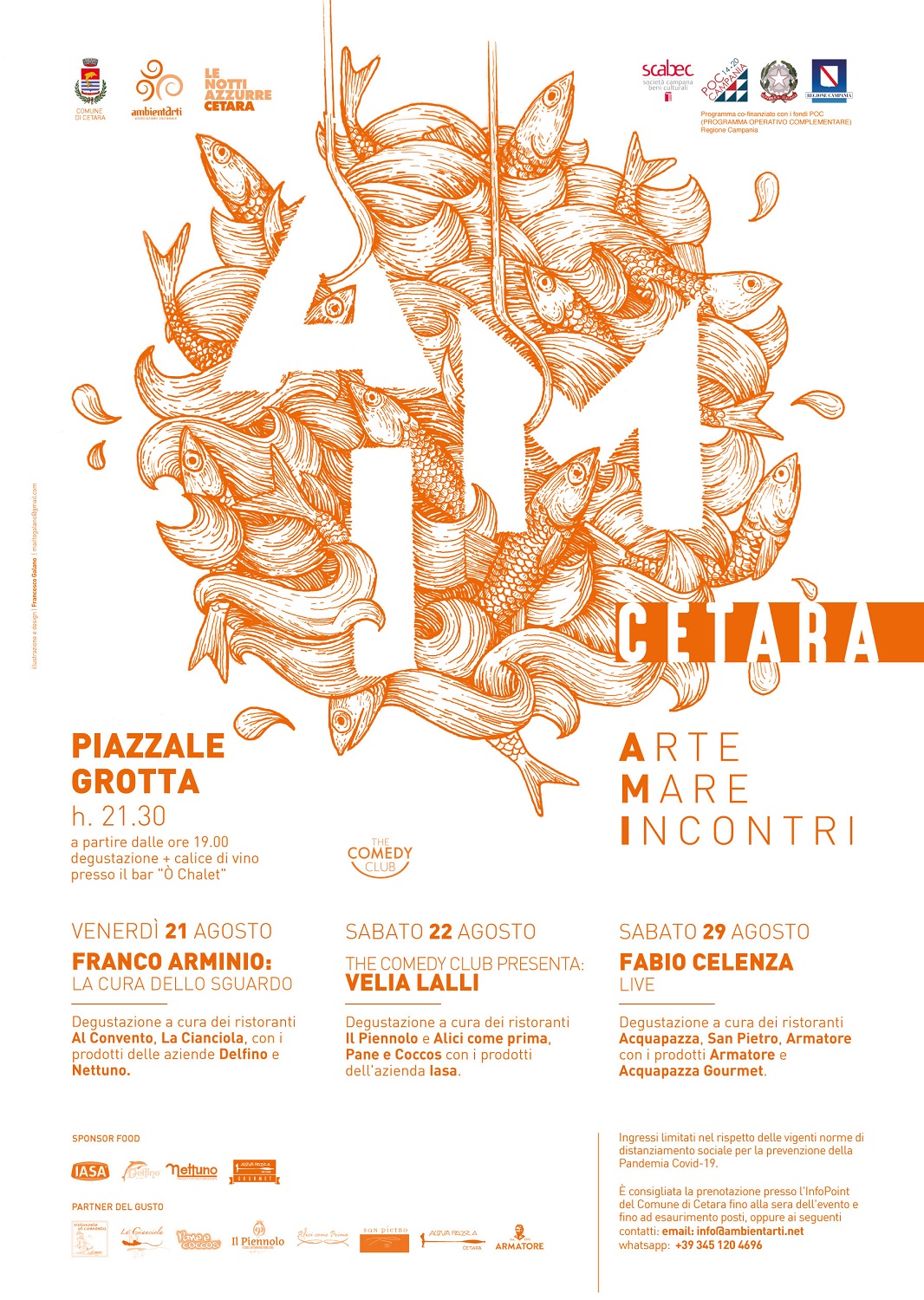 PER INFO. Ingressi limitati nel rispetto delle vigenti norme per la prevenzione Covid-19. E’ consigliata la prenotazione presso l’Infopoint del Comune di Cetara fino alla sera dell’evento e fino ad esaurimento posti, oppure rivolgendosi ai seguenti contatti: