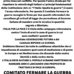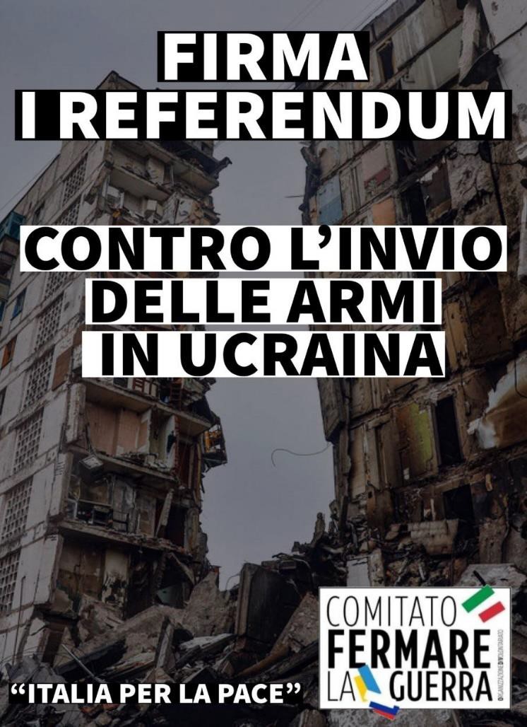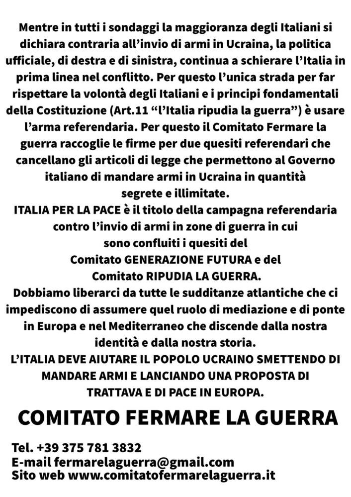 Comunichiamo alla spettabile cittadinanza che Il Comitato FERMARE LA GUERRA ha aderito alla campagna referendaria di raccolta firme contro l’invio di armi.