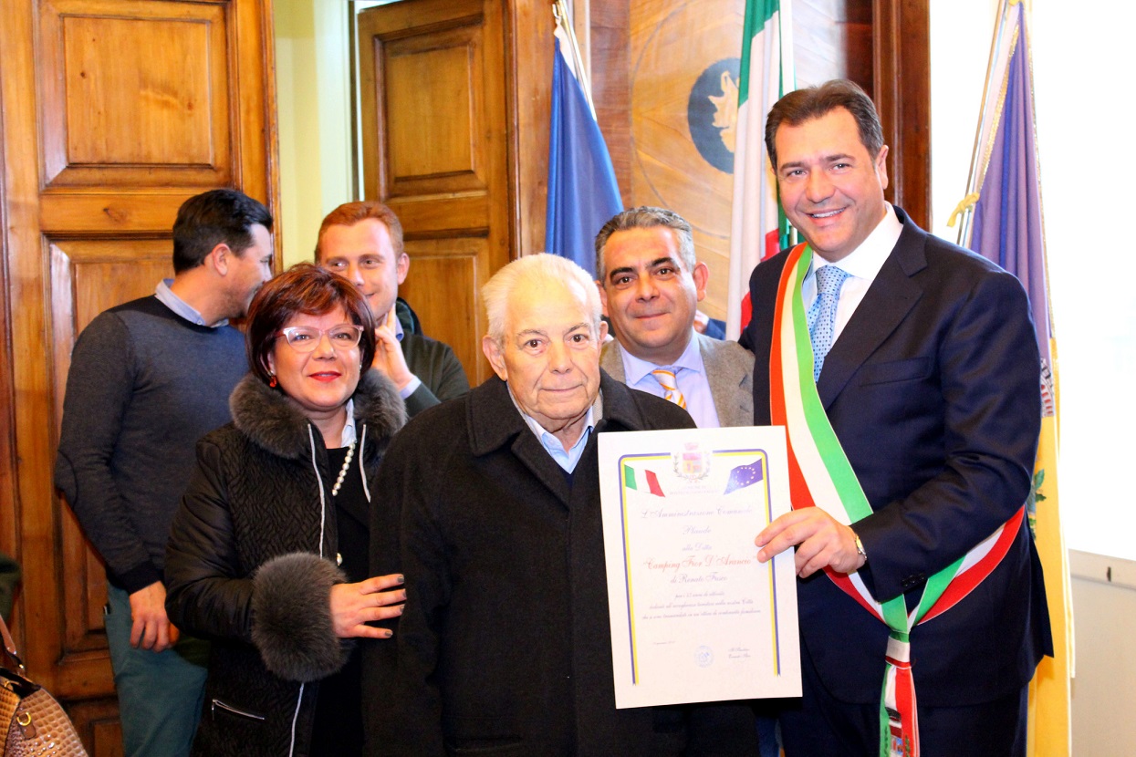 “Alla Ditta ‘Camping Fior d’Arancio’ di Renato Fusco per i 43 anni di attività dedicati all’accoglienza turistica nella nostra Città che si sono tramandati in un’ottica di continuità familiare”;