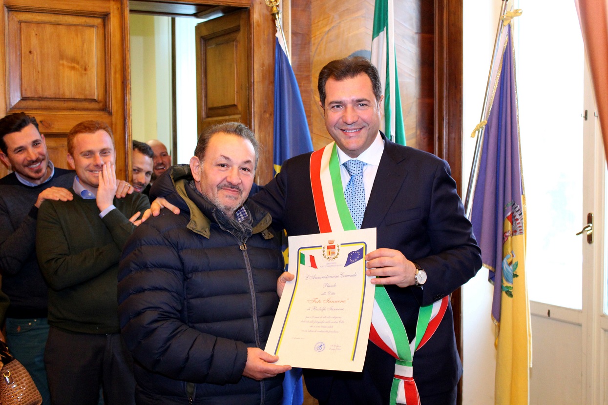 “Alla Ditta ‘Officine Colonnese’ di Ciro Colonnese per i 61 anni dedicati all’attività artigiana nella nostra Città caratterizzati da competenza tecnica e professionalità che si sono tramandati in un’ottica di continuità familiare”;