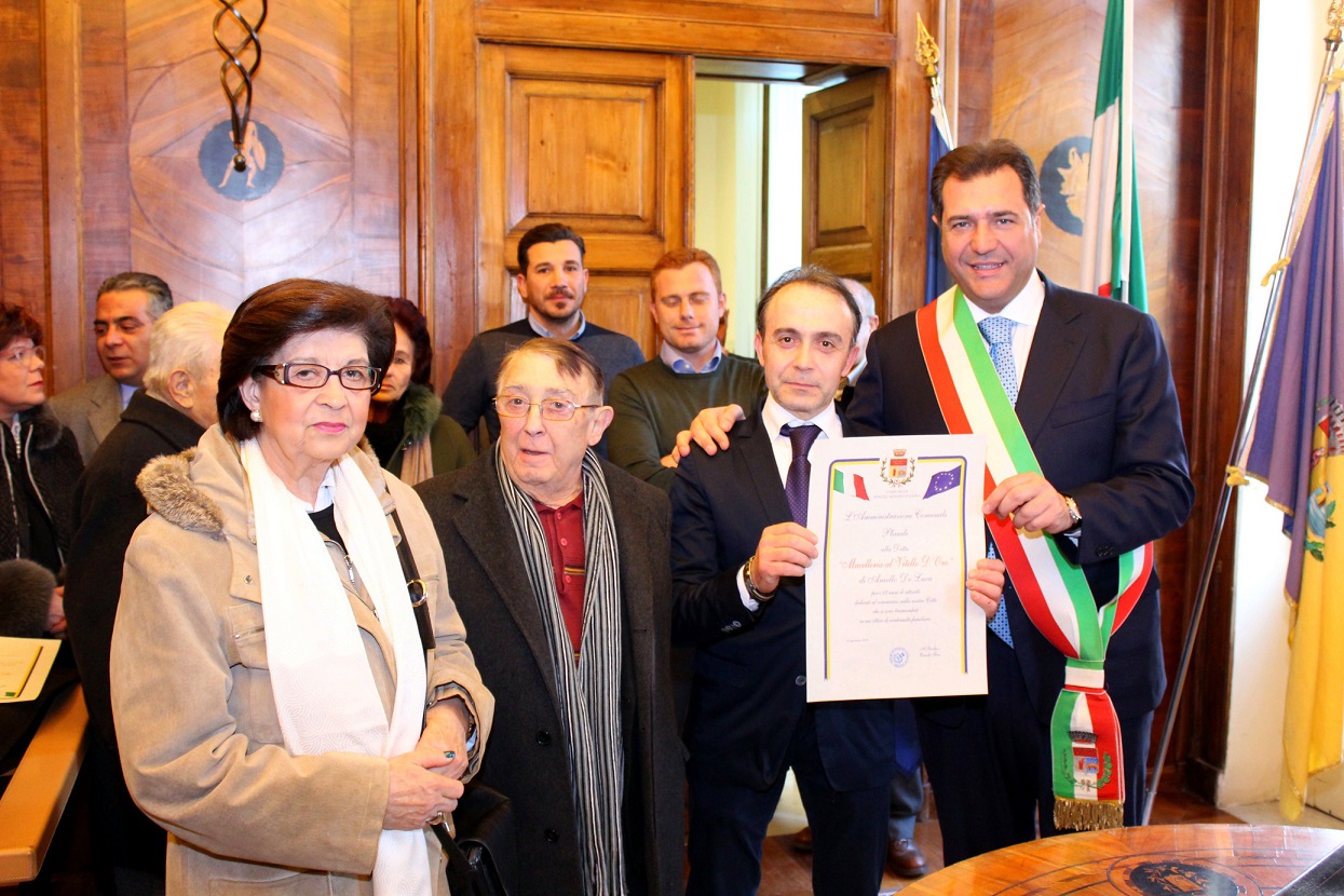 “Alla Ditta ‘Macelleria Al Vitello d’Oro’ di Aniello De Luca per i 62 anni di attività dedicati al commercio nella nostra Città che si sono tramandati in un’ottica di continuità familiare”.
