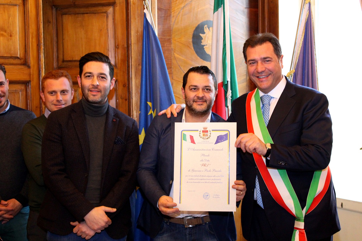 “Alla Ditta ‘Prj’ di Giacomo e Paolo Procida per i 40 anni dedicati all’attività artigiana nella nostra Città caratterizzati da competenza tecnica e professionalità che si sono tramandati in un’ottica di continuità familiare”;