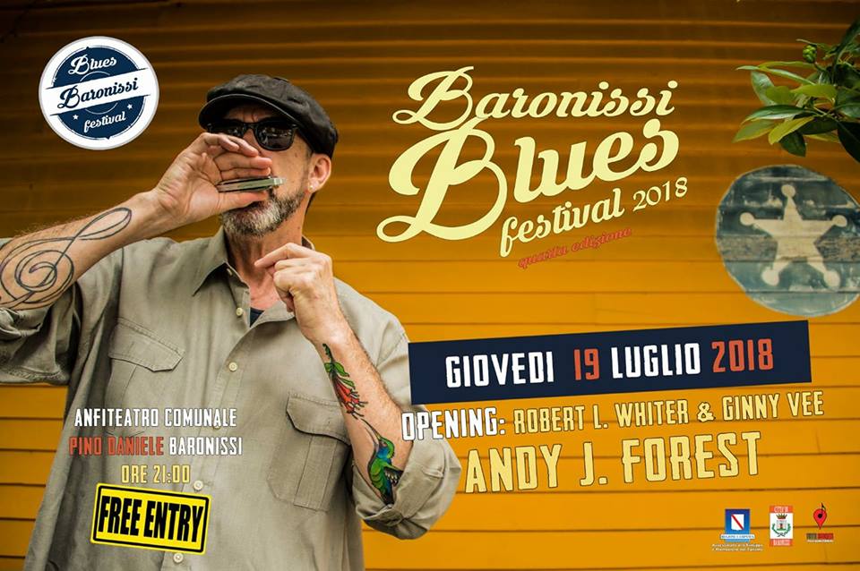 Da New Orleans alla Irno Valley, trasformatasi per tre giorni nella patria del blues internazionale in Campania. Gran finale del Baronissi Blues Festival con Andy J. Forest, on stage giovedì 19 luglio alle ore 21 con ingresso gratuito.