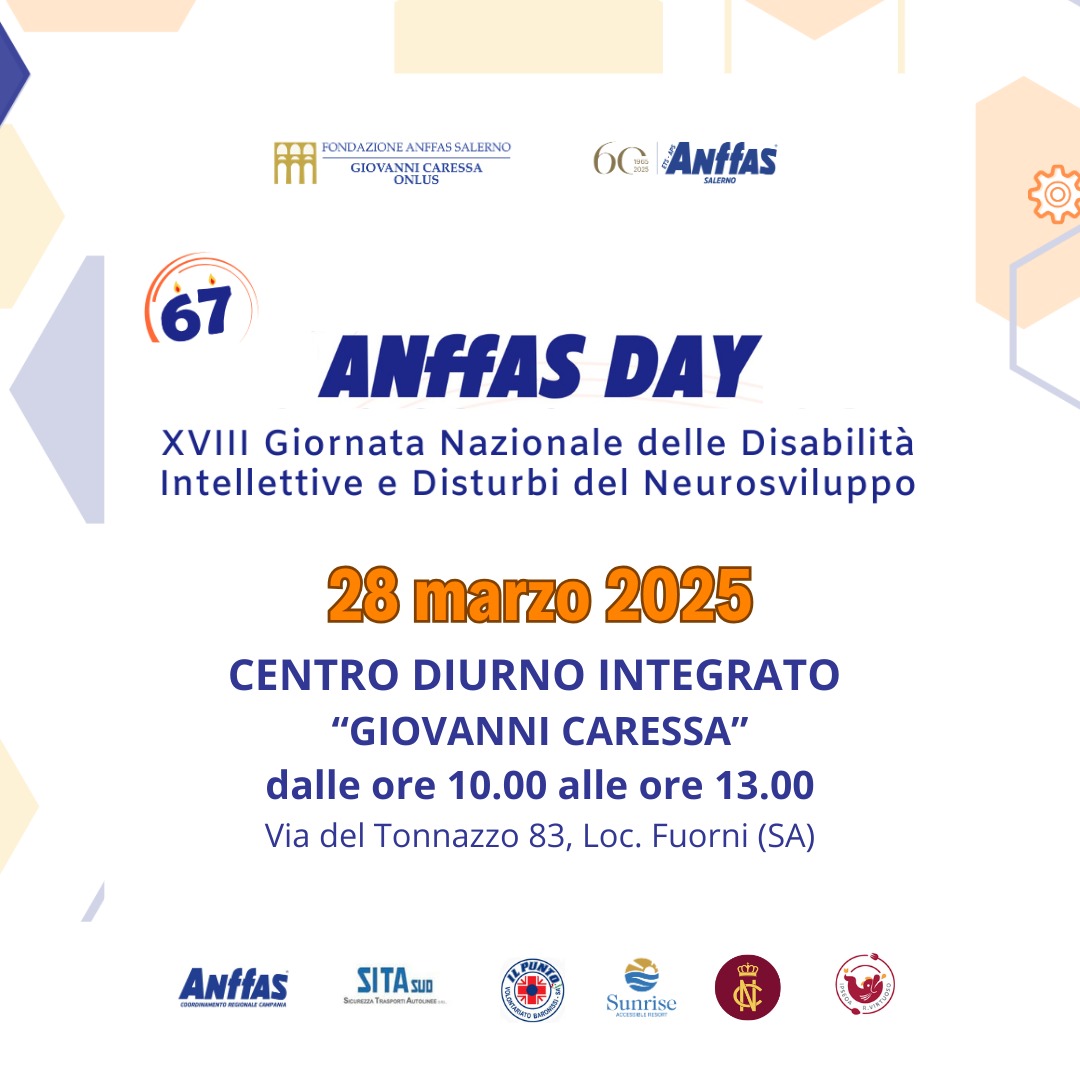 Venerdì 28 marzo 2025 in occasione del 67esimo anniversario della fondazione di Anffas Nazionale e della XVIII Giornata Nazionale delle Disabilità Intellettive e dei Disturbi del Neurosviluppo, la Fondazione Anffas Salerno Giovanni Caressa Onlus, presieduta da Salvatore Parisi, in partnership con Anffas Salerno ETS-APS, spalancherà le porte all’inclusione sociale con l’ormai consolidata formula dell’Open Day nella sua sede di Via del Tonnazzo in località Fuorni (Sa) per accogliere familiari e amici, cittadini e studenti delle scuole superiori, per una giornata di inclusione e di cultura sul tema della disabilità con un focus specifico sul progetto di vita e sui percorsi di inclusione lavorativa.