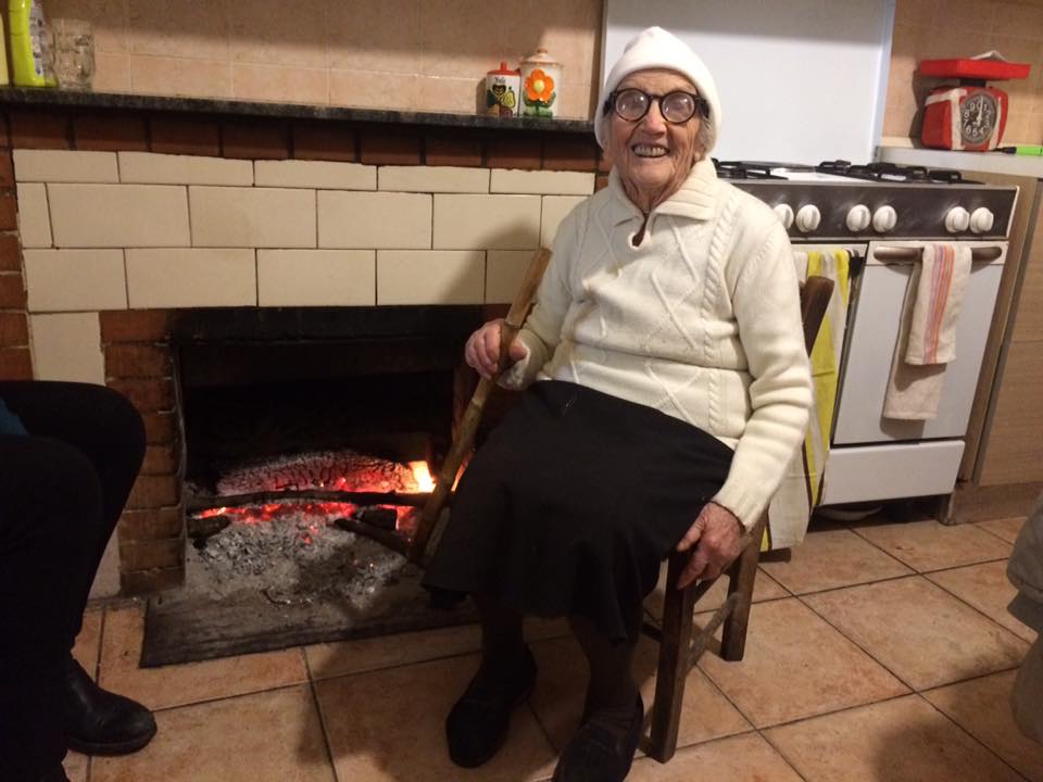 Ci racconta e descrive la sua vita da contadina e le sue sane abitudini alimentari che, forse, hanno contribuito al raggiungimento di questa invidiabile età. La piccola casa è accogliente. Il camino è acceso e riscalda la grande stanza, una chitarra appoggiata al muro, alle pareti le foto in bianco e nero della famiglia insieme ad una a colori di Papa Francesco, il riconoscimento di un concorso di poesie , un comodo divano rivestito da un lenzuolo colorato, la televisione in un angolo, sono le gioie essenziali di una straordinaria contadina, una volta bimba, poi mamma ed oggi una felicissima nonna. Sul retro della casa c’è il suo verde orto, un fazzoletto di terra che ancora oggi zappa e coltiva. Riesce a racimolare ben poco: verdura e tanta verdura, qualche patata, cipolle e tanta frutta sugli alberi ed in un angolo il pollaio con alcune galline, tutte risorse per una vita salubre e ricca di cose semplici. Antonietta è in buona salute perchè conduce una vita sana con l’imperativo di consumare solo cibi naturali e la nostra ammirazione si sofferma sull’importanza di ascoltare i suoi ricordi del passato, che ci possono solo regalare insegnamenti di vita semplice e genuina.