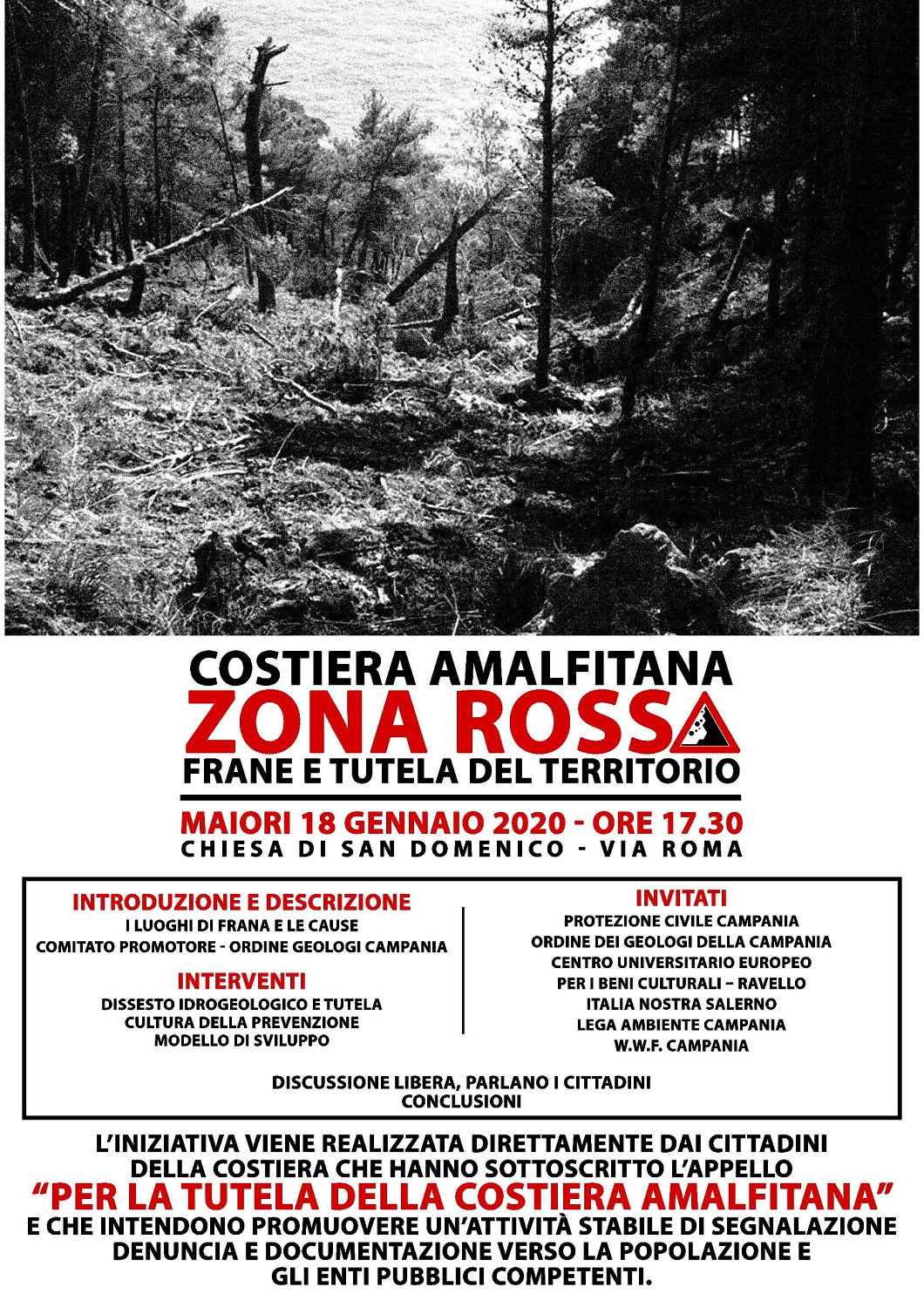 Sono stati invitati: Protezione Civile Regionale, Ordine dei Geologi della Campania, Centro Universitario Europeo per i Beni Culturali, Italia Nostra Salerno, Legambiente Campania, WWF Campania.