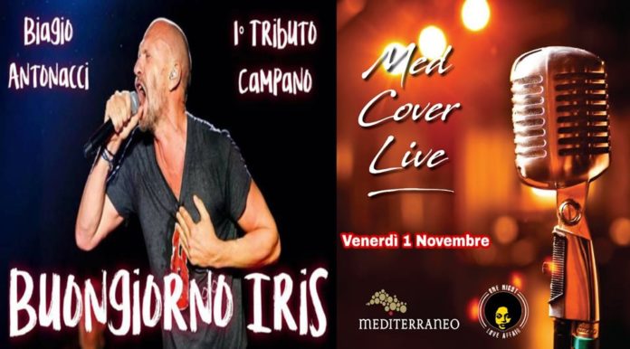 Dopo Halloween, il “Med” si piomba nel mese di novembre, venerdì 1 in compagnia di “Buongiorno IRIS”, il tributo al grande cantautore italiano Biagio Antonacci, i cui brani verranno rivisitati e riarrangiati dalla “Tribute Band Campania” a lui dedicata. La nuova tribute band campana di uno dei cantanti più amati dalle donne vi farà rivivere tutto il meglio del suo immenso repertorio dai primi successi (Se Io Se Lei, Liberatemi) agli ultimi (In Mezzo Al Mondo, Mio Fratello).