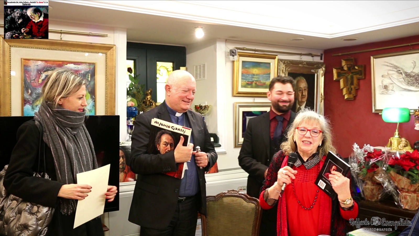 All’inaugurazione, svoltasi nei giorni scorsi, sono intervenuti, tra gli altri: Mons. Andrea Bellandi, Arcivescovo Metropolita di Salerno-Campagna-Acerno; Francesco Morra, Consigliere Provinciale di Salerno, Delegato alla Cultura; Gioita Caiazzo, Dirigente Provinciale alla Cultura; Paki Memoli, Vice Sindaco di Salerno; gli onorevoli Guido Milanese e Eva Avossa e il critico letterario Francesco D’Episcopo. Il percorso espositivo, che propone opere di pittura, scultura, ceramica, fotografia e arte presepiale, sarà visitabile, secondo un calendario consultabile sul sito e sul profilo fb dell’Accademia, fino al 6 Gennaio 2023 e poi fino a tutto Febbraio 2023, specialmente nei giorni di venerdì, nell’ambito degli appuntamenti de “La Cultura del Venerdì”. Questi gli artisti partecipanti che hanno risposto alla chiamata alle arti voluta dall’Accademia dalla professoressa Raffaella Grassi: Giovanni Armenante, Alessandra Calabrò, Giovanna Capraro, Teresa Correnti, Clara De Santis, Giulia Del Pizzo, Daniela Dumbrava, Raffaella Grassi, Taizo Hiraga, Fortunata Iuliano, Gian Luca Lancellotti, Rosa Leone, Arianna Paparella, Raffaella Polifroni, Aniello Romano, Regina Senatore, Teresa Sica, Maria Irene Vairo.
