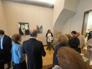 “Vurria addeventare chianellette” è il titolo di un’antica Villanella del 1537 che racconta di un uomo innamorato che immagina di trasformarsi per poter stare vicino alla sua amata. A cantarla è stato il noto chitarrista salernitano Matteo Cantarella che, nel suo recital per chitarra e voce intitolato “Elegia Napoletana”, ha raccontato la storia della canzone napoletana durante la serata organizzata dall’associazione “Parco Storico Sichelgaita”, presieduta dalla professoressa Clotilde Baccari Cioffi, nella grande sala della Pinacoteca Provinciale di Salerno In occasione della visita alla mostra “Manifestando- La mostra delle mostre”, ideata e curata dall’associazione culturale “Kaos48”, presieduta dal dottor Fabrizio Scomparin, progettata e organizzata dalla Soprintendenza Archeologica di Salerno e Avellino, diretta dalla dottoressa Raffaella Bonaudo, tenutasi nelle sale della Pinacoteca Provinciale di Salerno messa a disposizione dalla Provincia di Salerno, presieduta dall’avvocato Francesco Alfieri, con il patrocinio della Regione Campania, della Provincia di Salerno e del Comune di Salerno. La mostra, che ha riscosso un grande successo, ha avuto anche la finalità di promuovere la campagna “L’ Arte di Donarsi”, promossa dallo Sportello Amico Trapianti dell’ASL di Salerno, fortemente voluta dal Direttore Sanitario dell’ASL, Primo Sergianni, e dal Direttore Generale dell’ASL, Gennaro Sosto. “Donare è un’arte e il vero donare implica donare sé stessi, non solo dare ciò che si possiede, ma anche ciò che si è. Questa Mostra vuole promuovere la cultura della donazione di organi e tessuti al fine di sensibilizzare il più alto numero di persone”, hanno scritto nel catalogo della mostra, edito da “Iemme Edizioni”, le dottoresse Laura Baccari e Roberta Borrelli, Co-Referenti dello Sportello Amico Trapianti dell’ASL di Salerno. La mostra è stata presentata alle tante socie del “Parco Storico Sichelgaita” dalla dottoressa Rosa Maria Vitola, funzionaria della Soprintendenza Archeologica, che ha illustrato i circa settanta manifesti esposti attestanti la grande genialità del gallerista napoletano Lucio Amelio:” Affascinante è notare come i manifesti delle sue mostre abbiano assunto essi stessi significato di oggetto d’arte e di memoria storica individuale e collettiva” ha spiegato la dottoressa Vitola che si è soffermata su ogni manifesto ricordando alcuni dei nomi degli artisti le cui mostre erano state organizzate, dagli anni sessanta agli anni novanta, da Lucio Amelio che ha definito “un gallerista – artista”:” Ha portato Napoli al centro dell’Arte internazionale organizzando mostre con artisti che hanno fatto la storia dell’Arte Contemporanea a Napoli, in Europa e nel Mondo, come Paladino, Baselitz, Barcelò, Warhol, Beuys, Burri, Christo, Tatafiore, Mapplethorpe, Rauschenberg”. La dottoressa Vitola che ha curato l’organizzazione della mostra insieme alla dottoressa Paola Apuzza, funzionario Storico dell’Arte, ha anche presentato un video del regista napoletano Mario Martone, prodotto nel 1993, pochi mesi prima della morte di Lucio Amelio, nel quale, oltre ad una lunga intervista al famoso gallerista, vi sono le immagini dell’inaugurazione della mostra “Terrae Motus”, organizzata in seguito al terremoto che colpì la Campania nel 1980:” Vide la partecipazione di artisti provenienti da tutte le parti del mondo tra i quali vi erano anche Joseph Beuys ed Andy Warhol”.