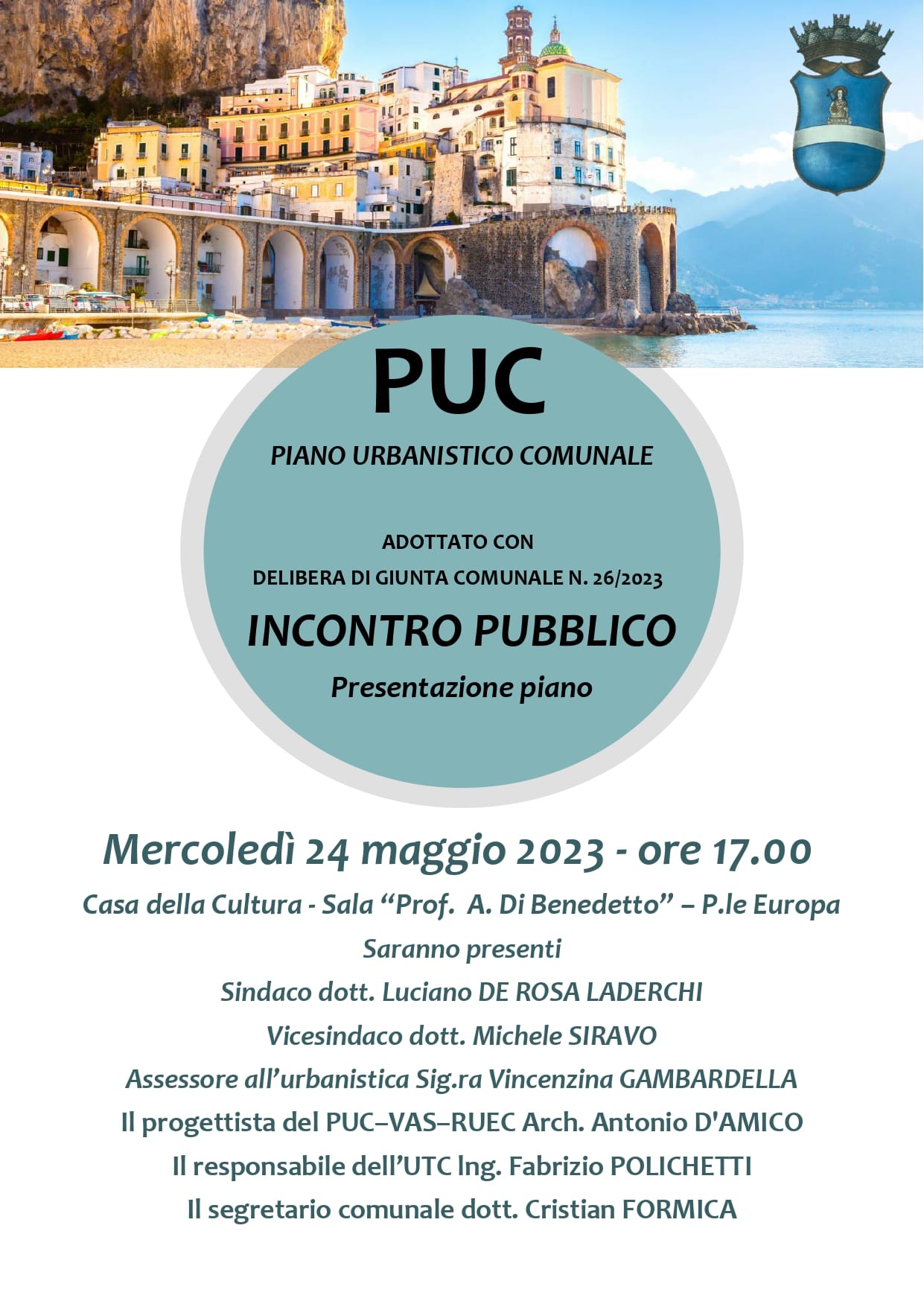 Il Piano Urbanistico Comunale è lo strumento di pianificazione territoriale ed urbanistica che consente di perseguire obiettivi di alto impatto sulla vita quotidiana di tutta la comunità. Atrani si dota, perciò, di un fondamentale dispositivo di governo del territorio in grado di garantire la tutela delle sue risorse ecologiche, naturalistiche, culturali e storiche e, allo stesso tempo, di permettere lo sviluppo socio-economico del borgo tutelando la vivibilità dei centri abitati e delle attività turistiche.